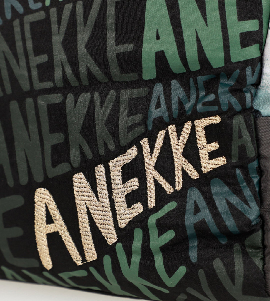 A táska dizájnja a kanadai hegyek domborművében látható térképe (orografikus térkép) ihlette nyomatot ötvözi, amely eredeti terepszínű nyomatot hoz létre. Ez keveredik a dizájn olyan részeivel, amelyekben az Anekke logó válik a főszereplővé, amely különböző színekben, textúrákban és méretekben jelenik meg, dombormű hatást keltve.