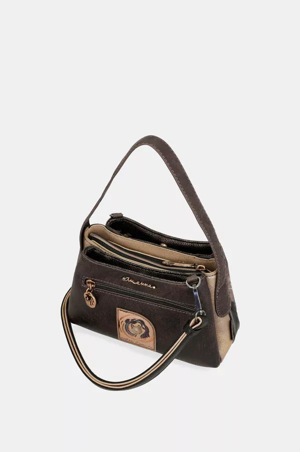 Ez a kis méretű keresztpántos táska 3 külön rekesszel rendelkezik. Cipzáras záródású és egy cipzáras hátsó zsebbel rendelkezik. A belső része bélelt. Két fogantyúval, egy vállpánttal és egy állítható vállpánttal rendelkezik, így mindig a kívánt hosszúsághoz igazíthatod.