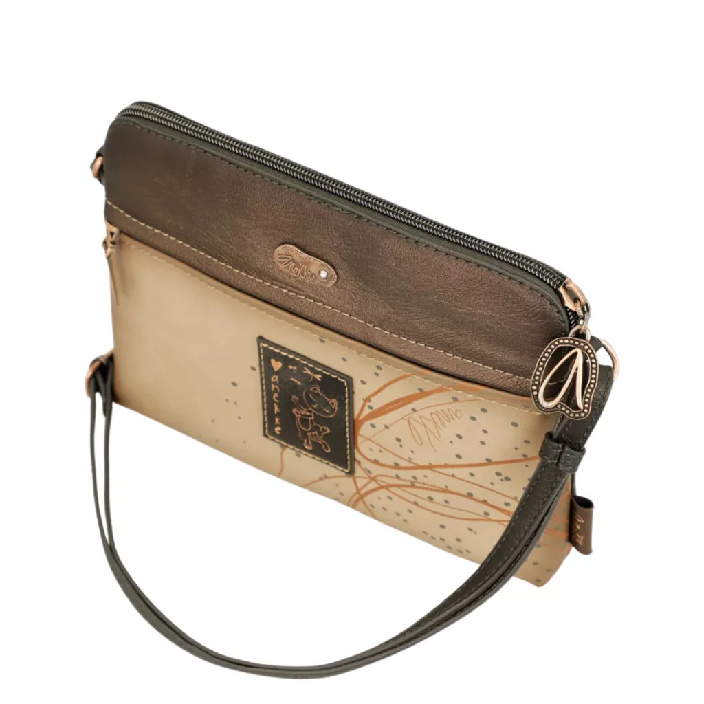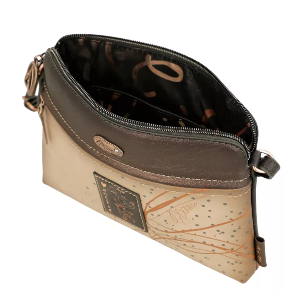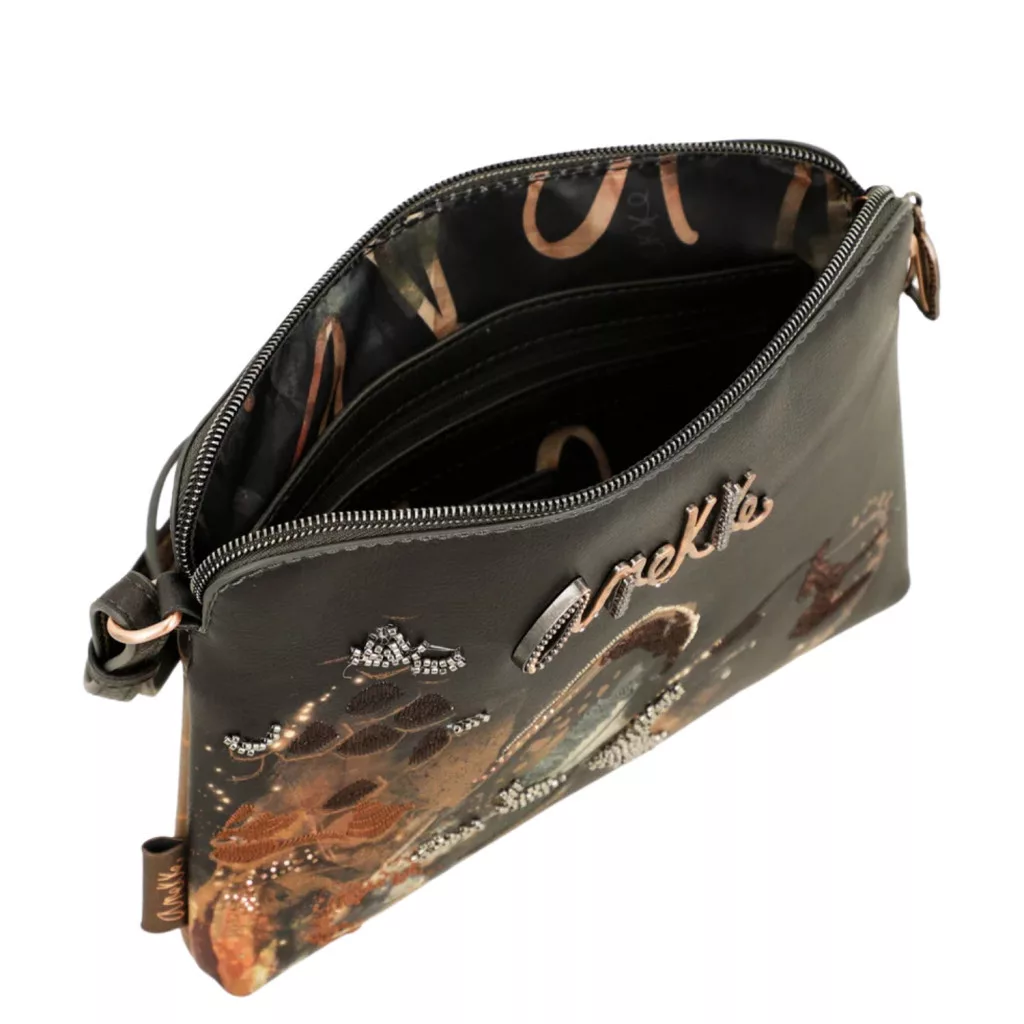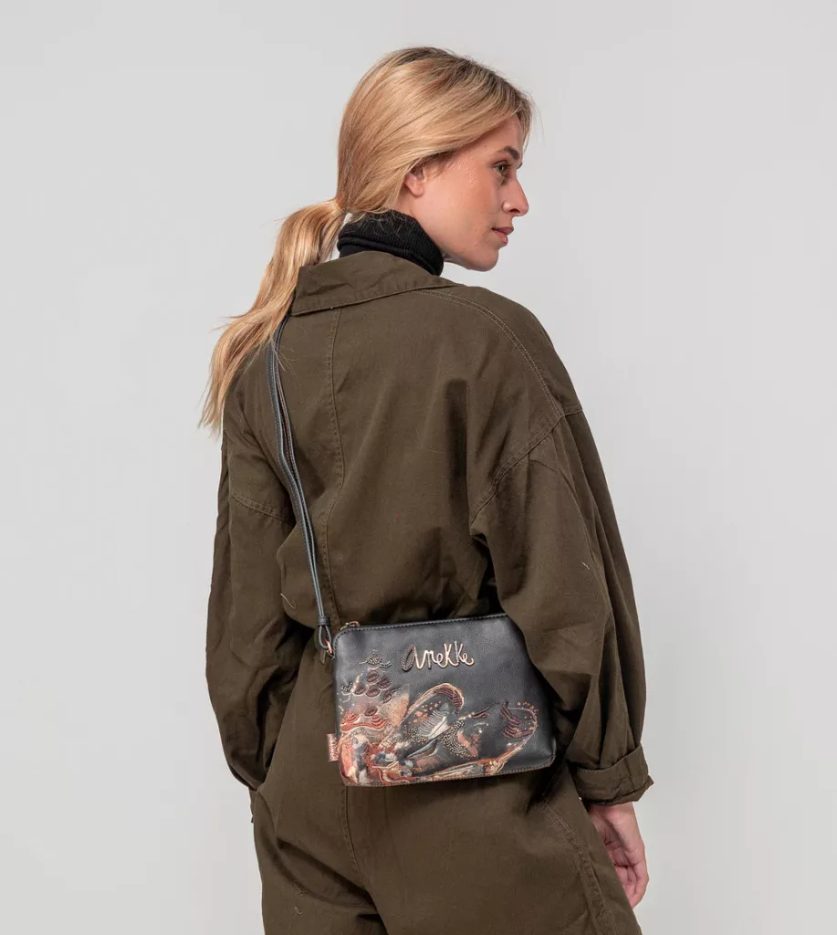 Az Anekke Dreamverse egy kollekció, amelyet a Föld középpontjába vezető képzeletbeli utazás ihletett. A kaland elkezdéséhez mindössze annyi a dolgod, hogy élesítsd az érzékeidet és megtaláld a kollekció új kedvencedet. Készen állsz? Az utazás most kezdődik! Ez a termék az Anekke Dreamverse Wings termékcsaládjának része. Ez a kollekció legelegánsabb kapszula alakú darabja, két színben (bézs és sötétbarna) kapható, az elülső részén pedig megkövesedett szárnyak formái láthatók. Az egyedi részletek, mint például az arany és a fémes pöttyök, elrepítenek ebbe az univerzumba, ahol kedvenc kiegészítőiddel egyúttal a belső éneden is keresztülutazhatsz.