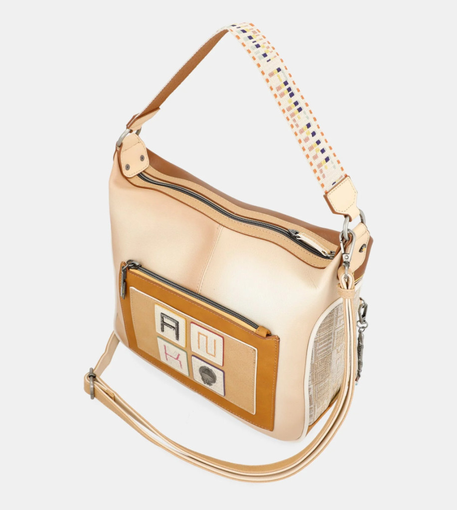 Ez a válltáska nagy méretű és egy hátsó zsebbel rendelkezik. A táska eleje a barna alapot különböző színű varrással és hímzéssel ötvözi: narancssárga, rózsaszín, sárga, sárga, akvamarin és sötétkék. Ezek a hímzett kifejezések olyan kifejezéseket vagy reprezentatív szavakat tartalmaznak, amelyek tükörképként olvashatók. Ezek a hímzett kifejezések olyan reprezentatív kifejezéseket vagy szavakat tartalmaznak, amelyek tükörképként olvashatók, fedezd fel őket!