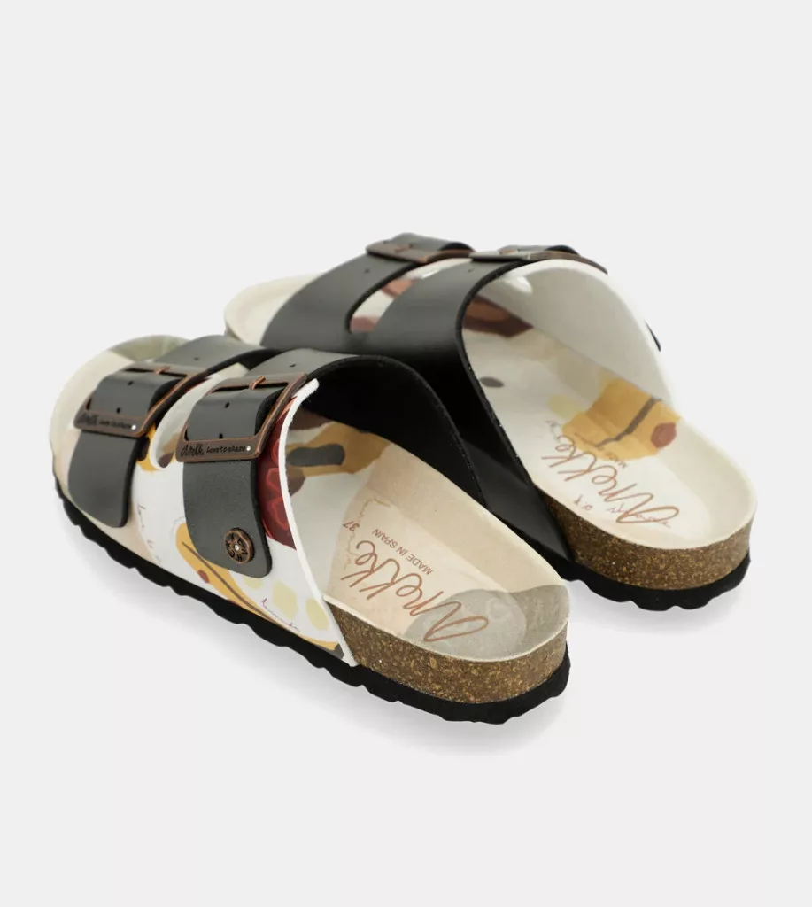 A natúr parafa egyedi fekete tónussal és a kollekció nyomatával ötvöződik anyagában. Ezenkívül a személyre szabott csat tökéletes illeszkedést biztosít a lábához. De ami egyedivé teszi őket, az az exkluzív nyomat az alapon.