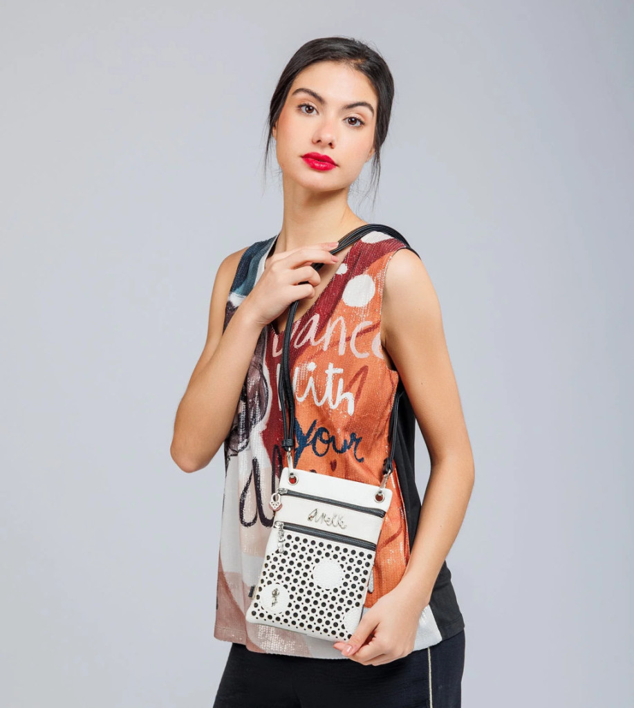 Ez a termék a Lunares termékcsalád része. Ezek az eredeti körök a spanyol kultúra egyik hagyományos motívumát képviselik, kézműves fonott rács formájában, amelyet nagyobb, geometrikus pöttyök borítanak át. Ebben a sorban nagyon elegáns formátumokat találhat újragondolt hagyományos érintéssel, a szegecsek, kivágások és csapok sok részletén keresztül. Ez a kis méretű crossbody táska elöl két rekesszel rendelkezik, mindkettő cipzárral záródik, valamint egy rekesz a hátulján. Belseje bélelt. A vállpánt különböző hosszúságúra állítható, és hátul hurokkal rendelkezik, így a derékban is hordható, mint egy fanny pack. És bár azt mondják, hogy a lélek olyasvalami, amit nem láthatunk és nem érinthetünk meg, valamit „lélekkel” tenni azt jelenti, hogy szeretettel, izgalommal és a legjobb éneddel csinálod. Készülj hát fel, hogy lélekben táncolj Anekkével, és válaszd ki az új kedvencedet most!