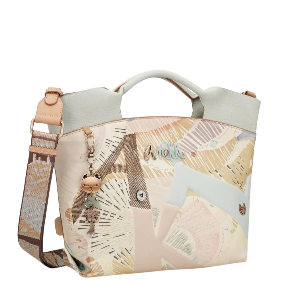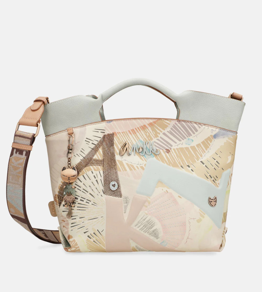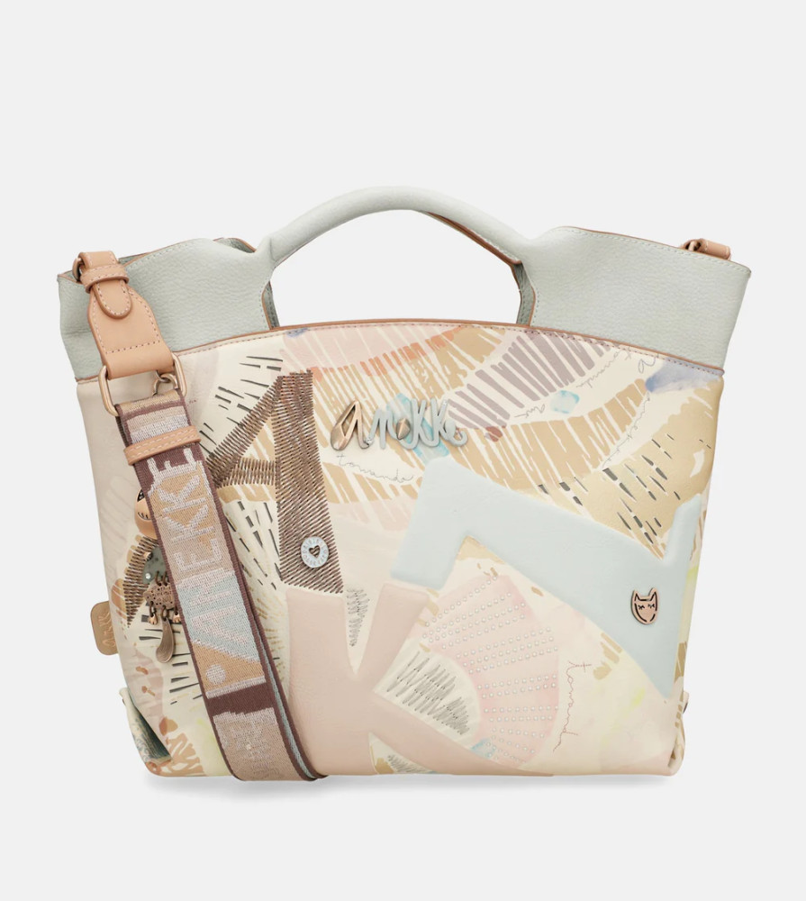 Ez a Passion sorozatból származó táska az Anekke Hollywood kollekció része, és különböző blokkokban kombinált lágy tónusai, préselt kivágások és hímzések jellemzik, amelyek térfogatot generálnak az eredeti nyomatokon.