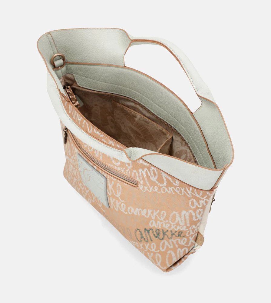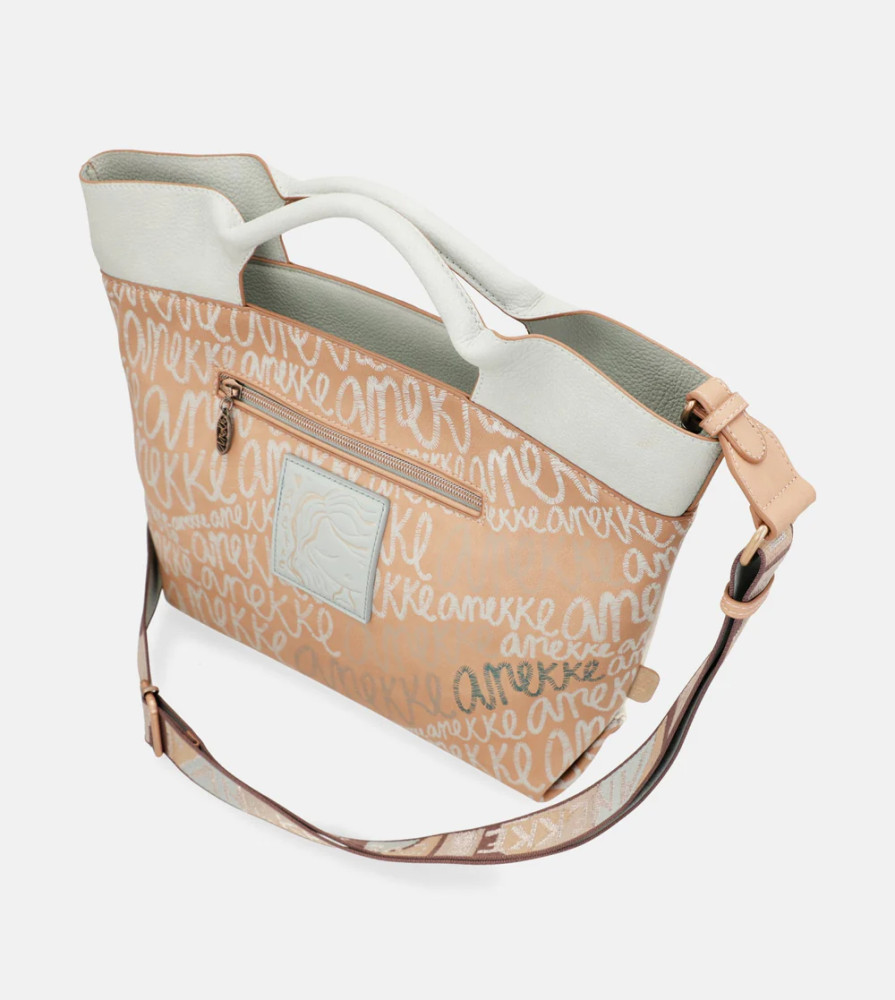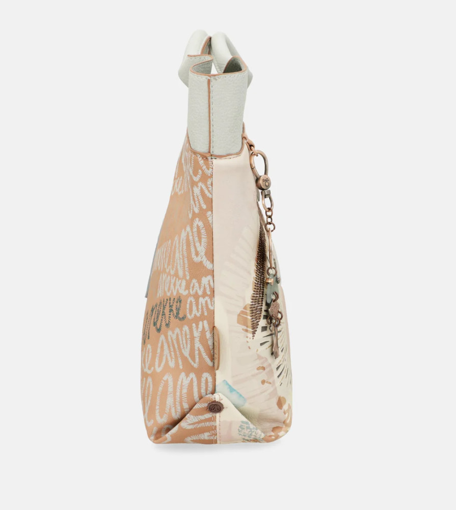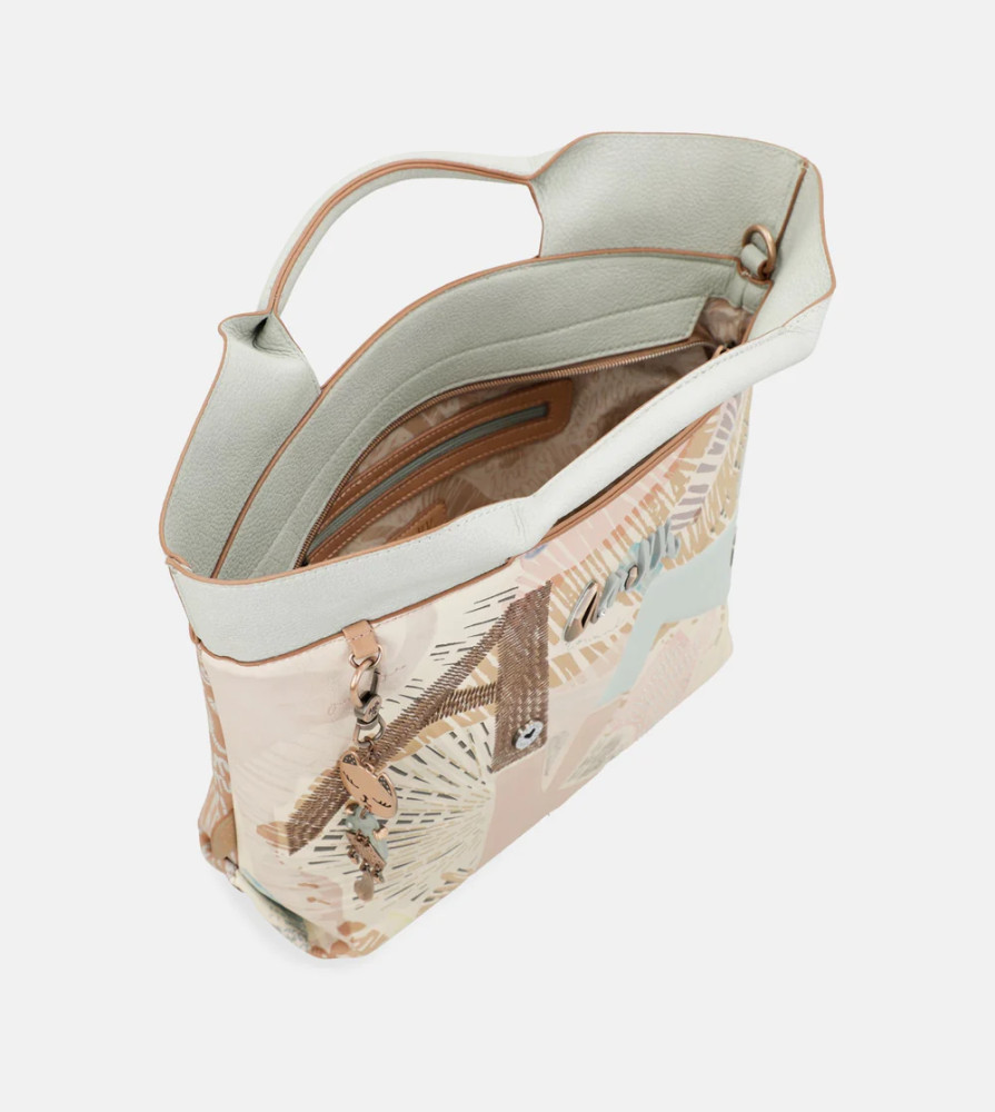 Ez a Passion sorozatból származó táska az Anekke Hollywood kollekció része, és különböző blokkokban kombinált lágy tónusai, préselt kivágások és hímzések jellemzik, amelyek térfogatot generálnak az eredeti nyomatokon.