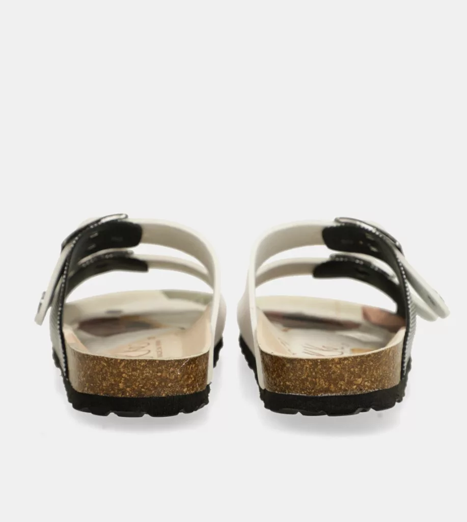 A natúr parafa alap, fehér, holdmintás anyagokkal, valamint nyomott talppal és teljesen testreszabott részletekkel kombinálva igazán egyedi bioszandált eredményez. A csatok lehetővé teszik, hogy a különböző lábakhoz igazodjanak, így a valaha volt legkényelmesebb szandál.