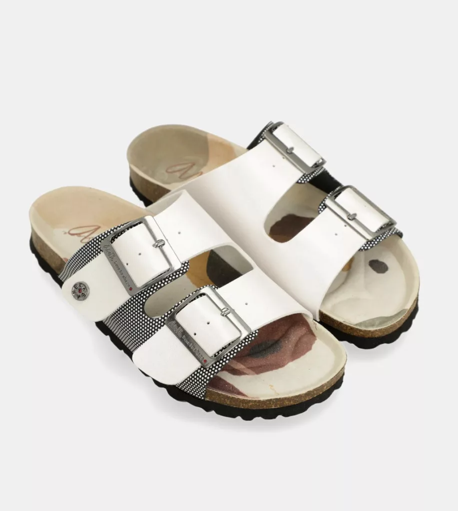 A natúr parafa alap, fehér, holdmintás anyagokkal, valamint nyomott talppal és teljesen testreszabott részletekkel kombinálva igazán egyedi bioszandált eredményez. A csatok lehetővé teszik, hogy a különböző lábakhoz igazodjanak, így a valaha volt legkényelmesebb szandál.