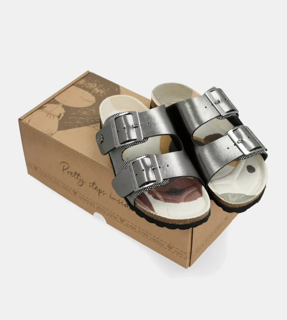 A természetes parafa alap és a fekete anyagok kombinációja a Hold mintájával, a nyomott talppal és a teljesen testreszabott részletekkel együtt igazán egyedi bioszandált eredményez. A csatok lehetővé teszik, hogy bármilyen lábra tökéletesen illeszkedjenek, így a világ legkényelmesebb szandáljaivá válnak.