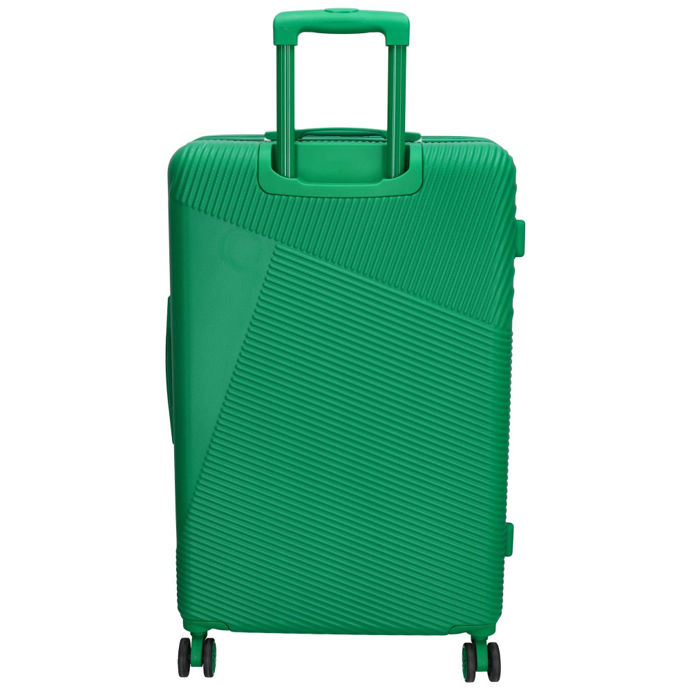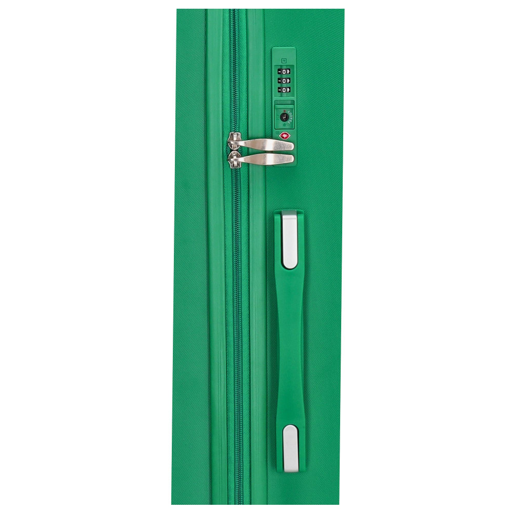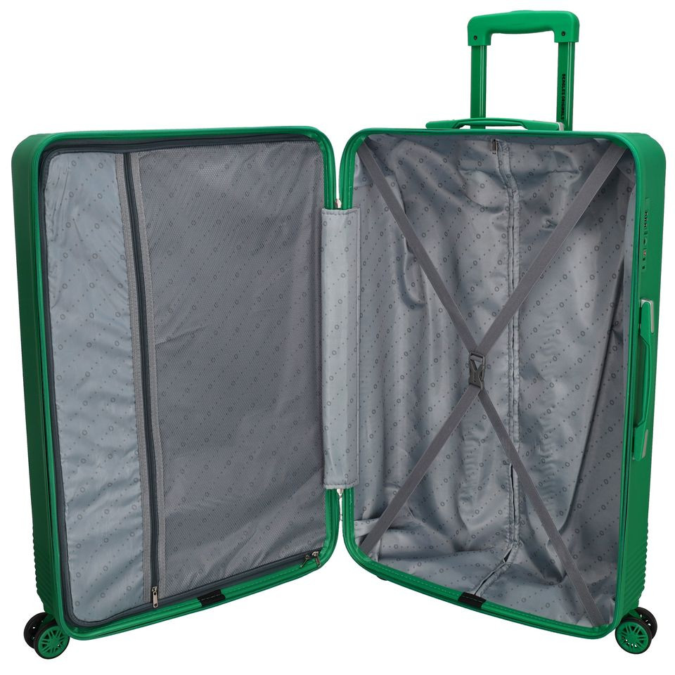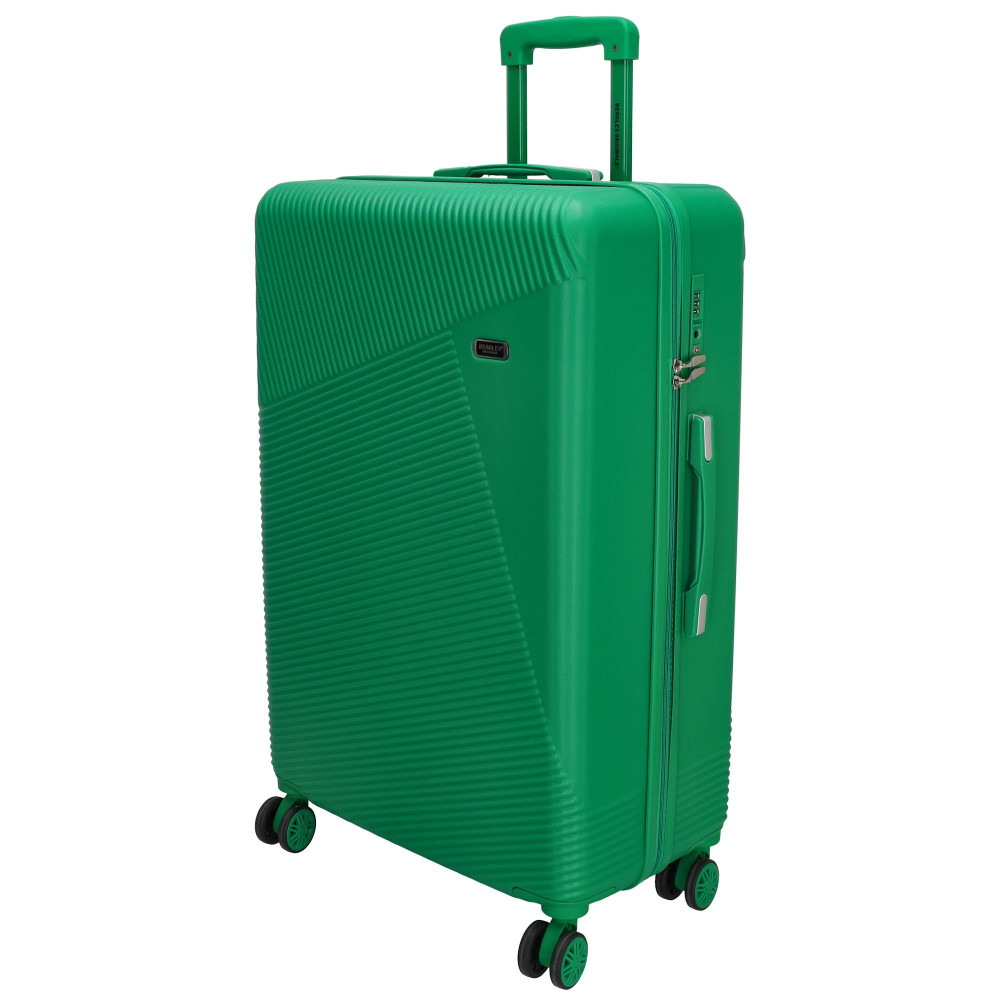 Beagles nagy méretű bőrönd. Prémium Holland bőrönd. Fiatalos és stílusos Marbella sorozat, "a tökéletes városi társ". 2-4 hetes utazáshoz ajánljuk. Anyaga kemény, ütésálló ABS. Strapabíró, 360 fokban finoman gördülő négykerekű. Tetején és oldalán fix kézbefogó fogantyú. Tetején kihúzható húzokar. Másik oldalán négy strapabíró védőtalp. Körbe cipzáras záródású. Az oldalán 3-jegyű TSA számzár, a fő cipzárok lezárásához. A számzár egyénileg, tetszés szerint egyszerűen programozható. Belül teljesen bélelet poliészter. Belseje két rekeszes, cipzáras elválasztóval és állítható ruha rögzítő kereszt pántokkal. Külső méretek (szélesség x magasság x mélység) 48 x 77 x 29 cm (magába foglalva a kerekeket, fogantyúkat). Súlya 3,8 kg. Térfogata 100 l.