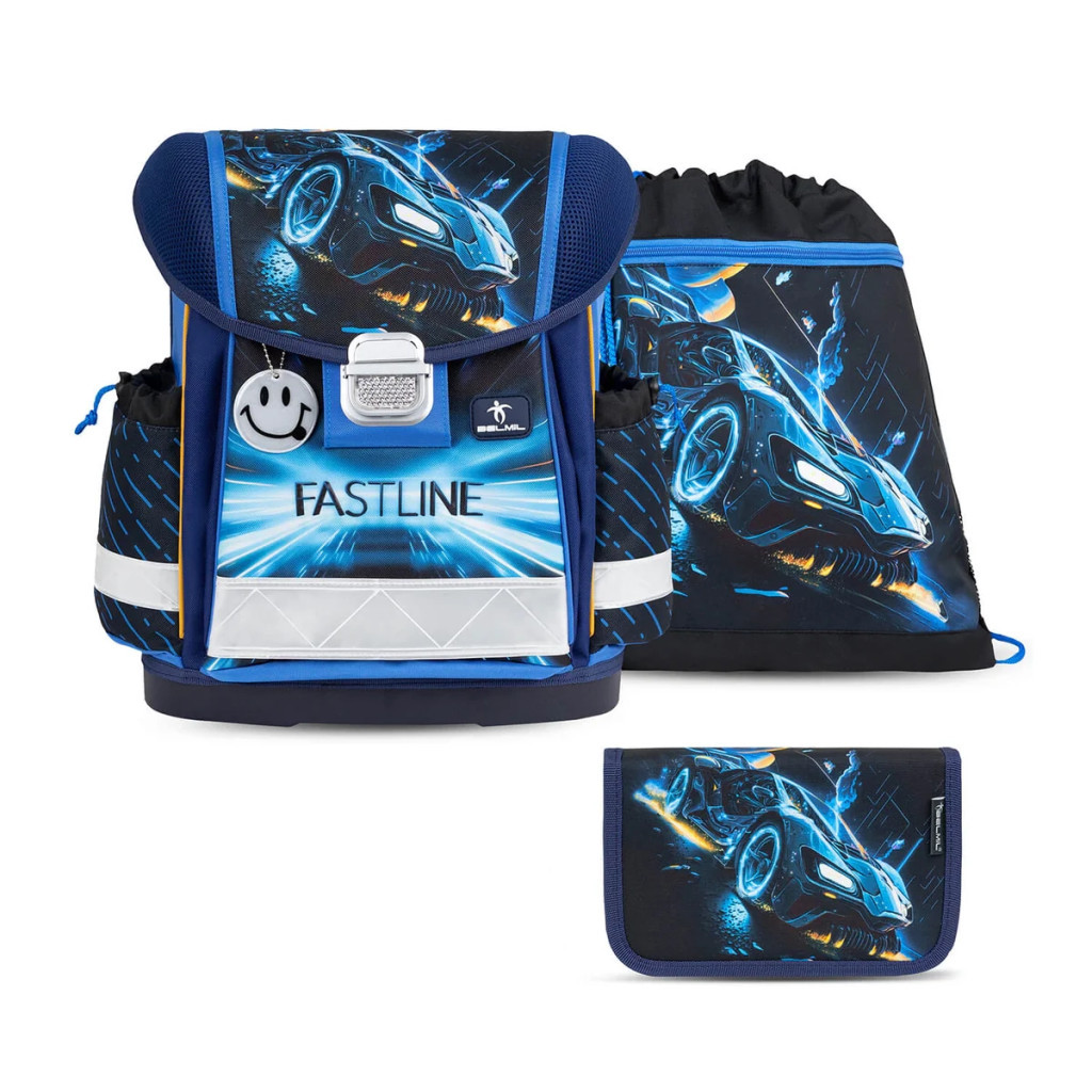 ÚJ Belmil Fastline kék autós elsős iskolatáska szett