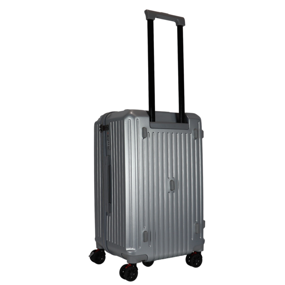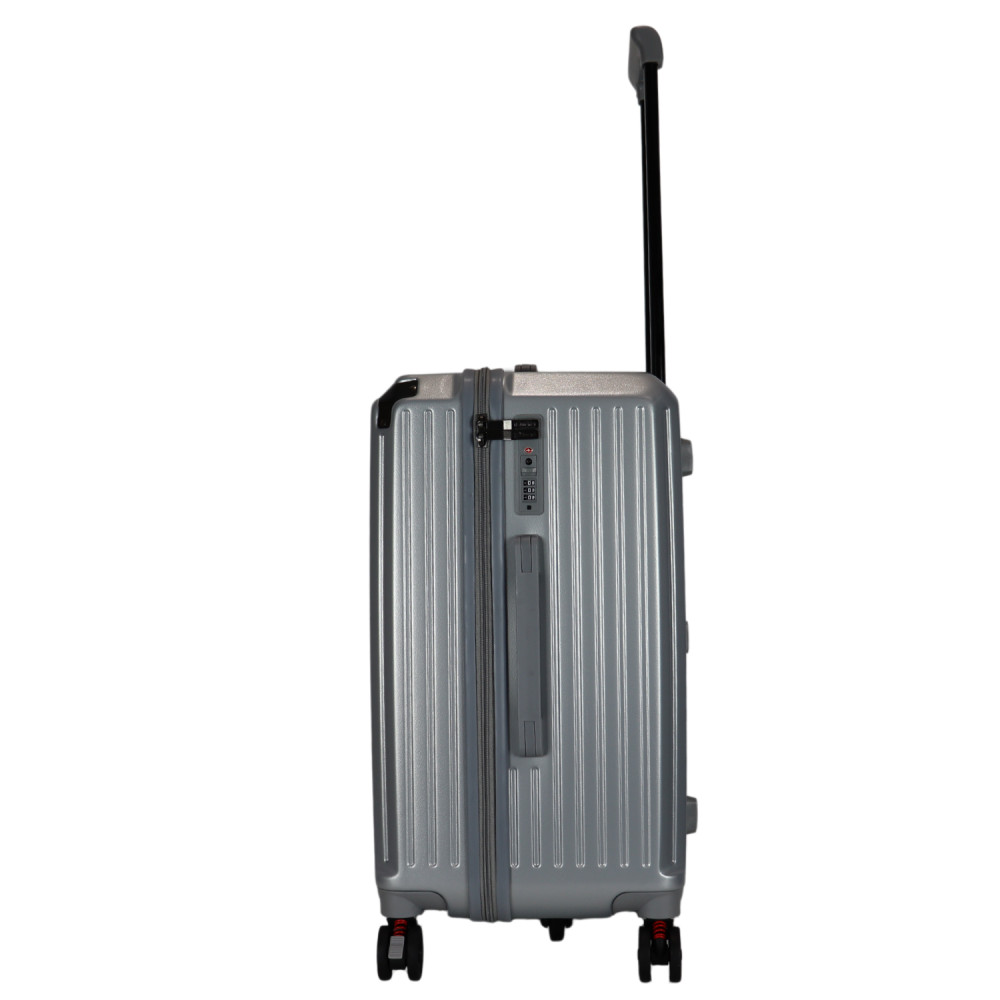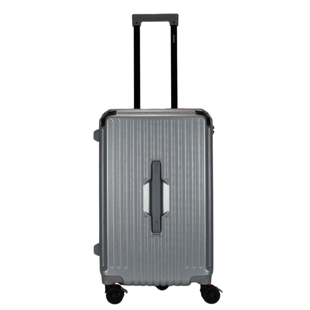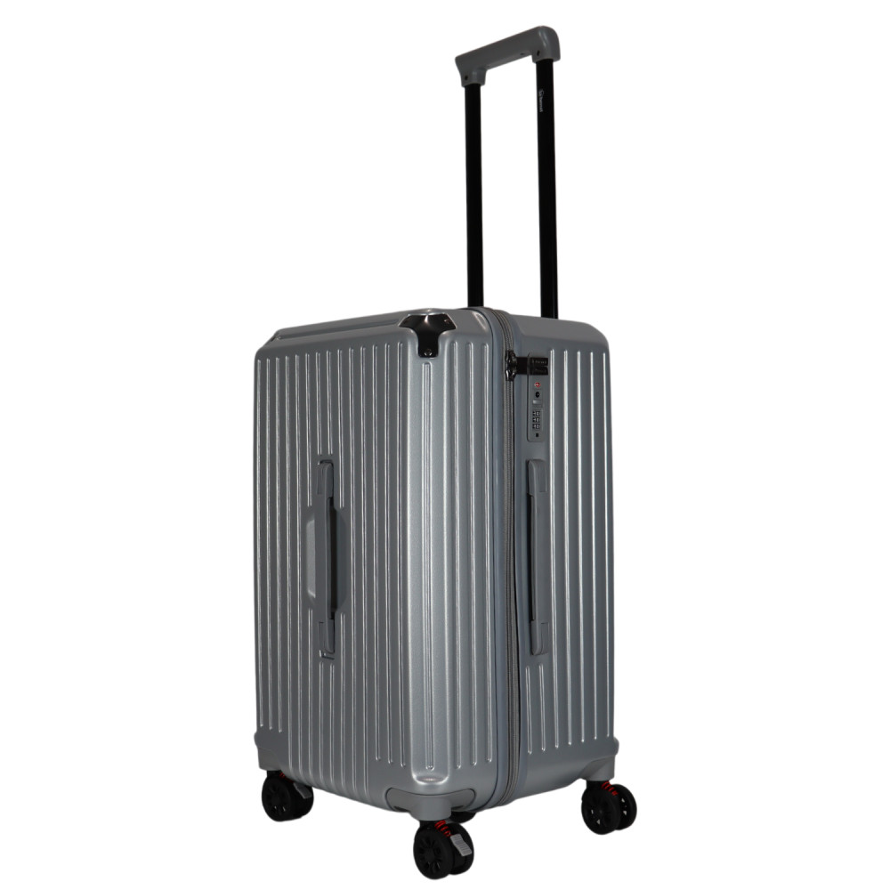 Benzi prémium Spanyol közepes méretű bőrönd. Fiatalos és stílusos, "a tökéletes városi társ". 1-2 hetes utazáshoz ajánljuk. Anyaga kemény, ütésálló ABS. Strapabíró, 360 fokban finoman gördülő dupla kerekes négykerekű. Tetején és oldalán fix kézbefogó fogantyú. Tetején kihúzható húzokar. Másik oldalán négy strapabíró védőtalp. Körbe cipzáras záródású. Az oldalán 3-jegyű TSA számzár, a fő cipzárok lezárásához. A számzár egyénileg, tetszés szerint egyszerűen programozható. Belül teljesen bélelet poliészter. Belseje két rekeszes, cipzáras elválasztóval és állítható ruha rögzítő kereszt pántokkal. Külső méretek (szélesség x magasság x mélység) 39 x 63 x 33 cm (magába foglalva a kerekeket, fogantyúkat). Súlya 3,3 kg. Térfogata 72 l.
