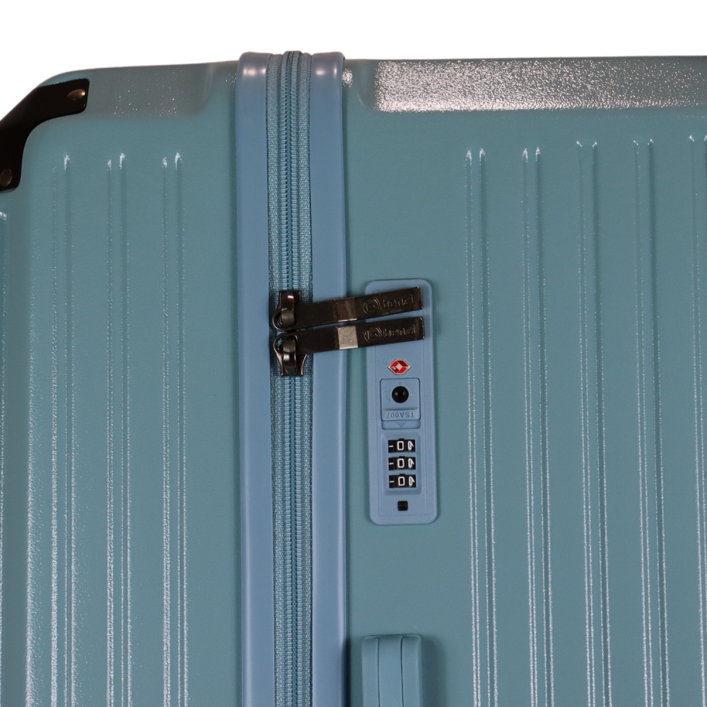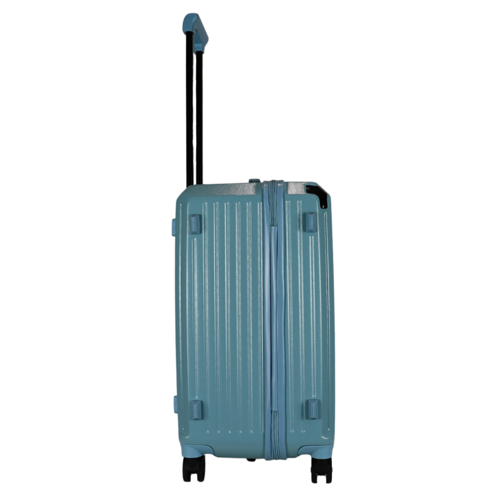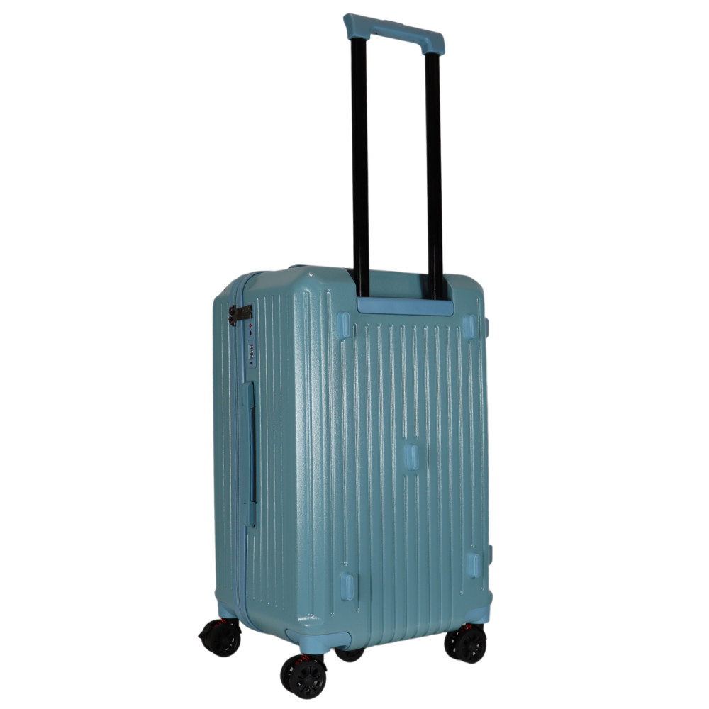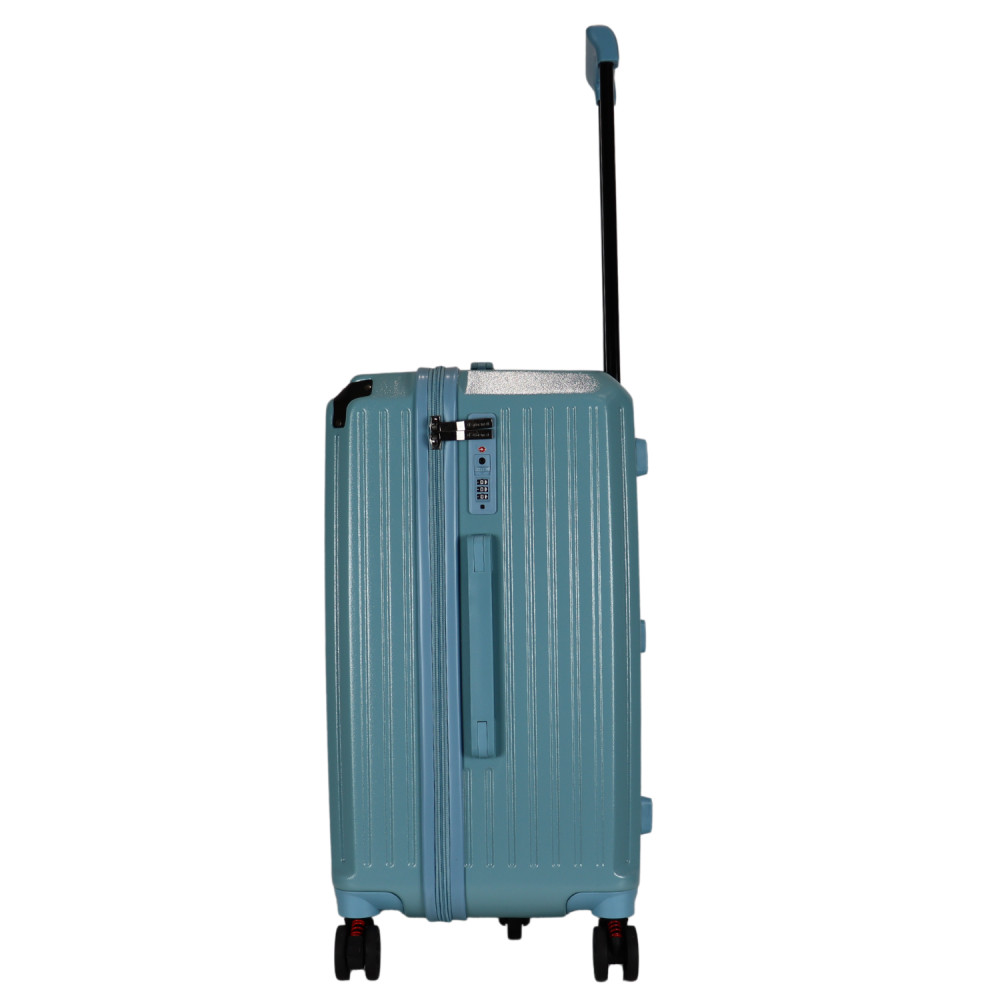 Benzi prémium Spanyol közepes méretű bőrönd. Fiatalos és stílusos, "a tökéletes városi társ". 1-2 hetes utazáshoz ajánljuk. Anyaga kemény, ütésálló ABS. Strapabíró, 360 fokban finoman gördülő dupla kerekes négykerekű. Tetején és oldalán fix kézbefogó fogantyú. Tetején kihúzható húzokar. Másik oldalán négy strapabíró védőtalp. Körbe cipzáras záródású. Az oldalán 3-jegyű TSA számzár, a fő cipzárok lezárásához. A számzár egyénileg, tetszés szerint egyszerűen programozható. Belül teljesen bélelet poliészter. Belseje két rekeszes, cipzáras elválasztóval és állítható ruha rögzítő kereszt pántokkal. Külső méretek (szélesség x magasság x mélység) 39 x 63 x 33 cm (magába foglalva a kerekeket, fogantyúkat). Súlya 3,3 kg. Térfogata 72 l.