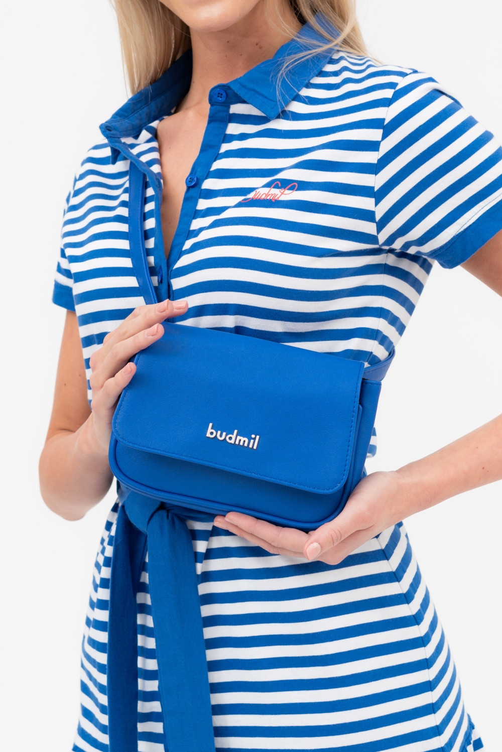 Budmil női övtáska. Anyaga műbőr. Patenttal záródik. Deréköve állítható. Méretei (Szélesség x magasság x Mélység) 19x13x3 cm.