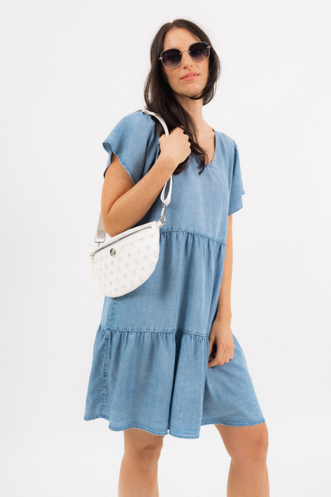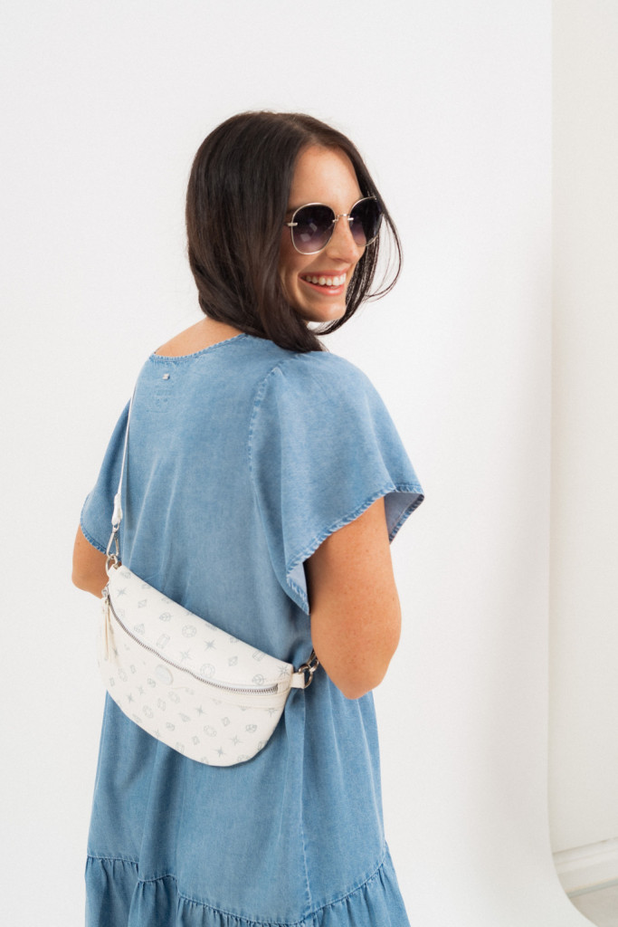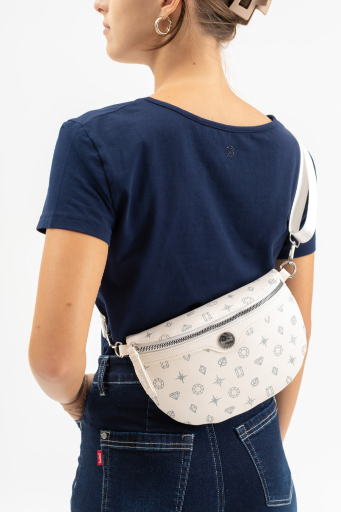 Ez a női műbőr övtáska praktikus és stílusos választás a mindennapokra. A cipzáras zsebek segítenek rendezetten tárolni a személyes tárgyakat, míg az állítható derékpánt biztosítja, hogy kényelmesen illeszkedjen a derékhoz. A fémcímke modern, elegáns részletként emeli ki az övtáska megjelenését.