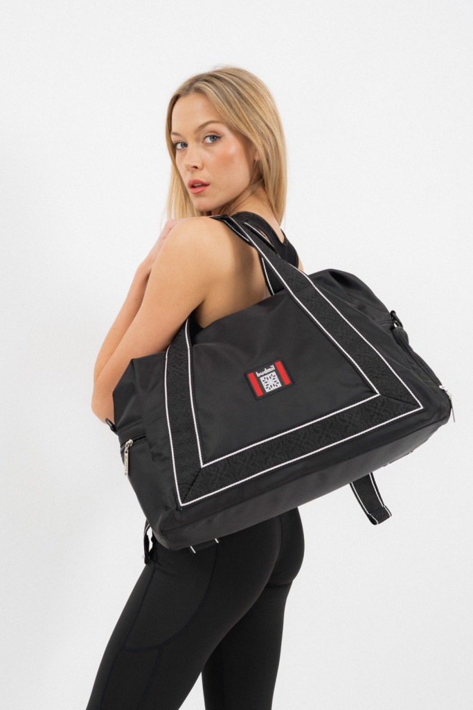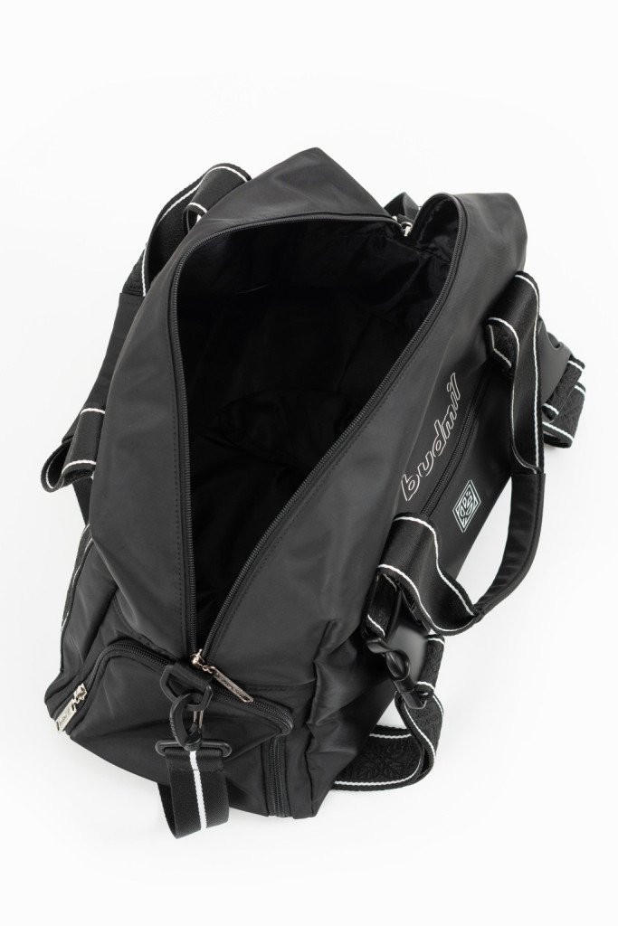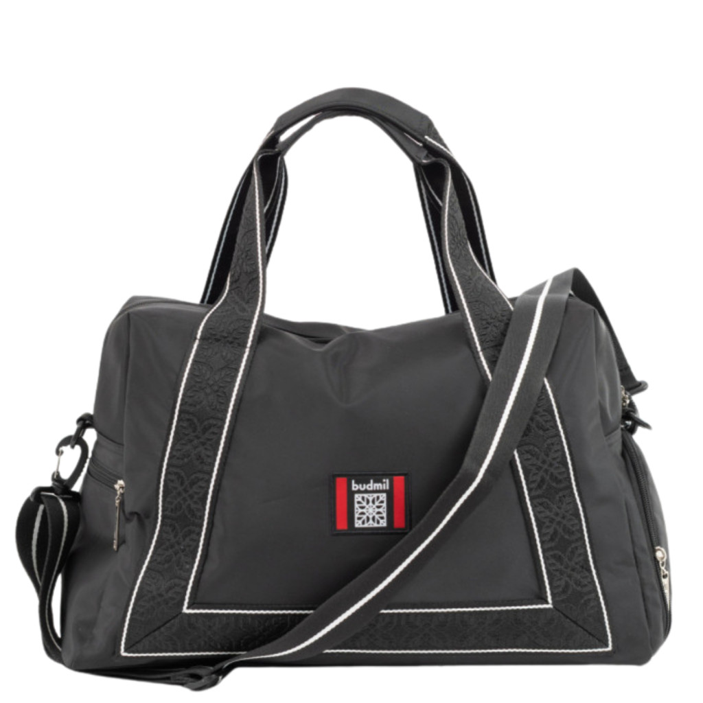 Ez a női textil sporttáska / utazótáska praktikus és stílusos választás a mindennapokra vagy rövidebb utazásokhoz. A vízlepergető anyag védi a tartalmát az esőtől és fröccsenő víztől, míg a cipzáras zsebek biztosítják a kisebb tárgyak rendezettségét. Az állítható, leszedhető vállpánt kényelmes viseletet biztosít, és a matractartó külső pántok lehetővé teszik a plusz felszerelés könnyű rögzítését. A nyomott minta és szövött címke modern, stílusos részletként emeli ki a táska karakterét.