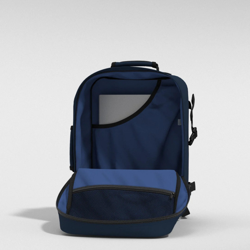 Elöltöltős hátizsák kagylóhéj alakú nyílással a hatékony csomagolás érdekében