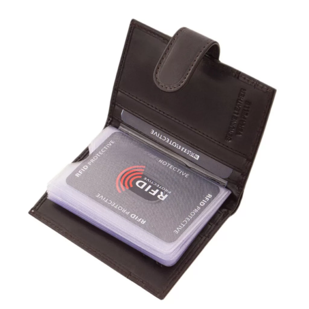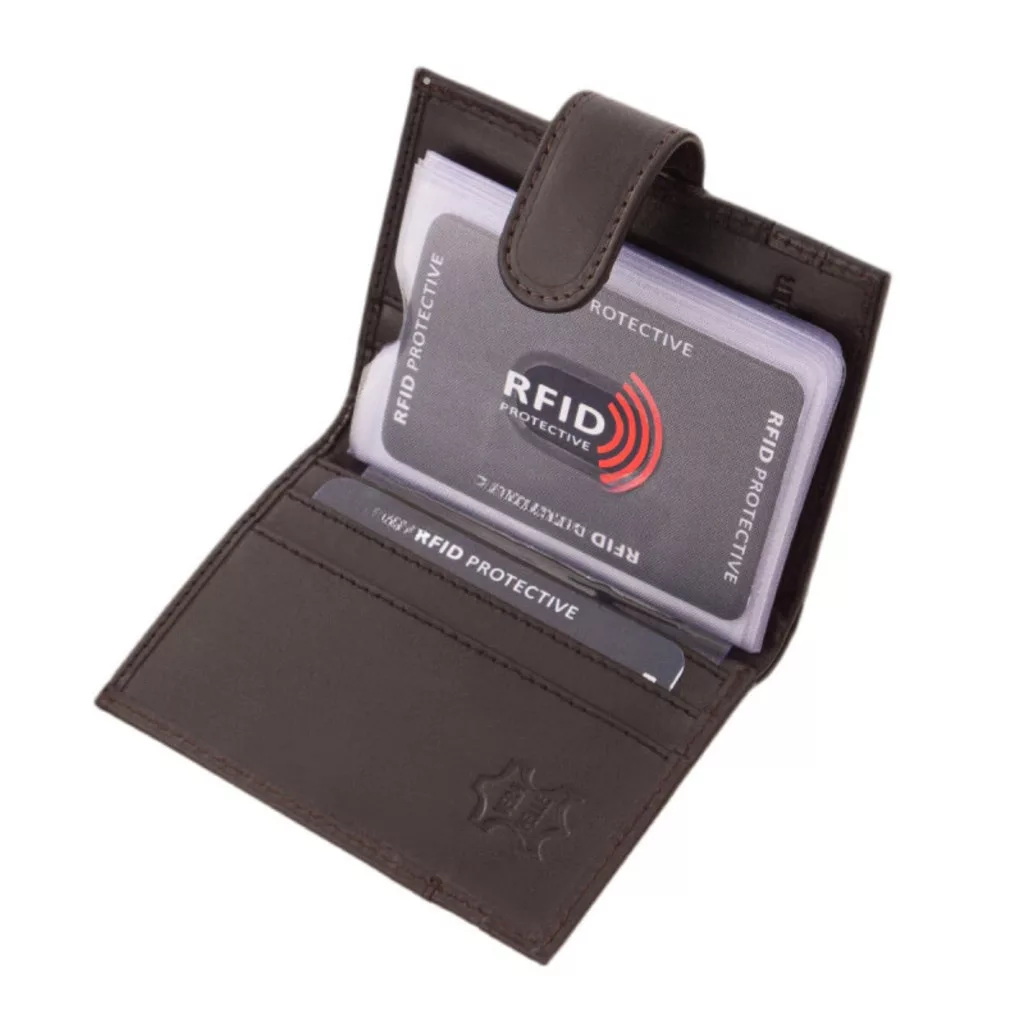 Kártyatartó elengedhetetlen RFID védelemmel, elegáns dizájnnal, természetesen valódi bőr anyagból gyártott minőségi díszdobozos termékünk.