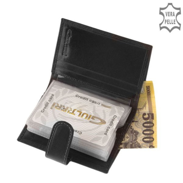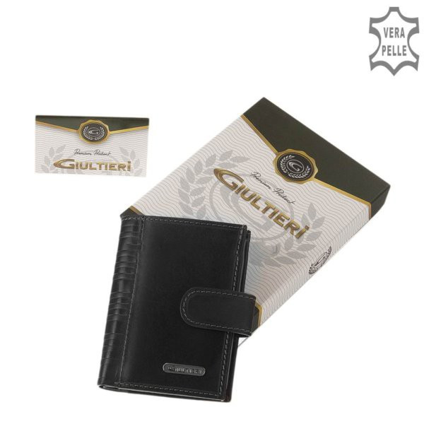 Giultieri SIV808/T fekete bőr férfi exkluzív kártyatartó és pénztárca