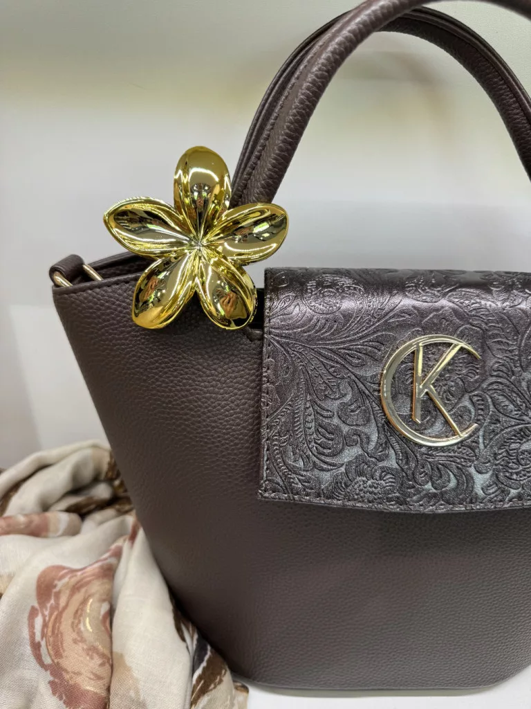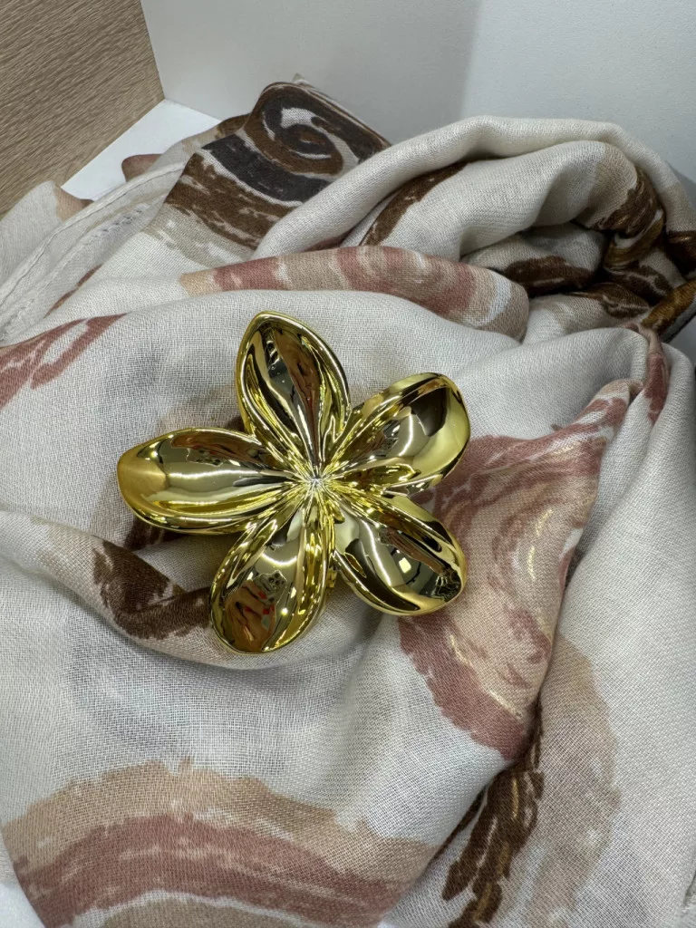 Virág alakú hajcsat és táskadísz arany