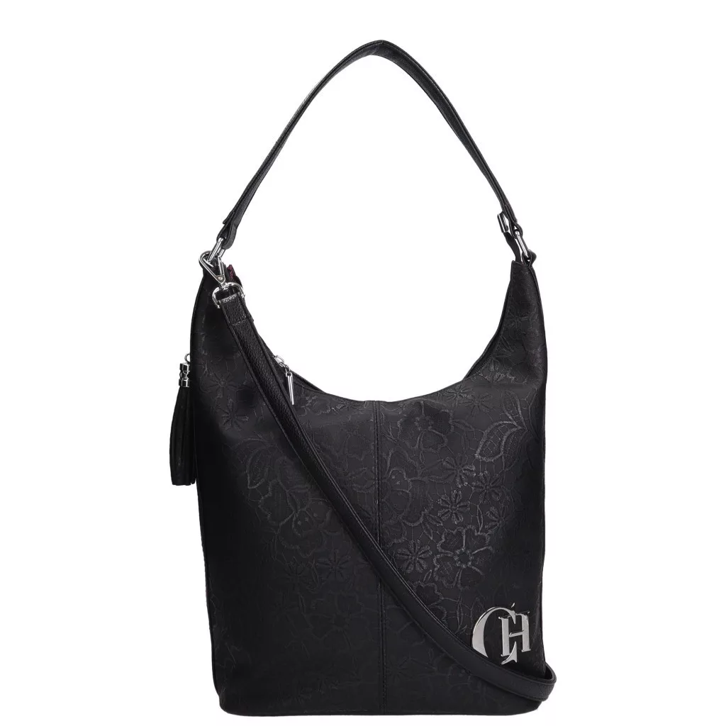 Chiara L 354 fekete virág mintás rostbőr táska