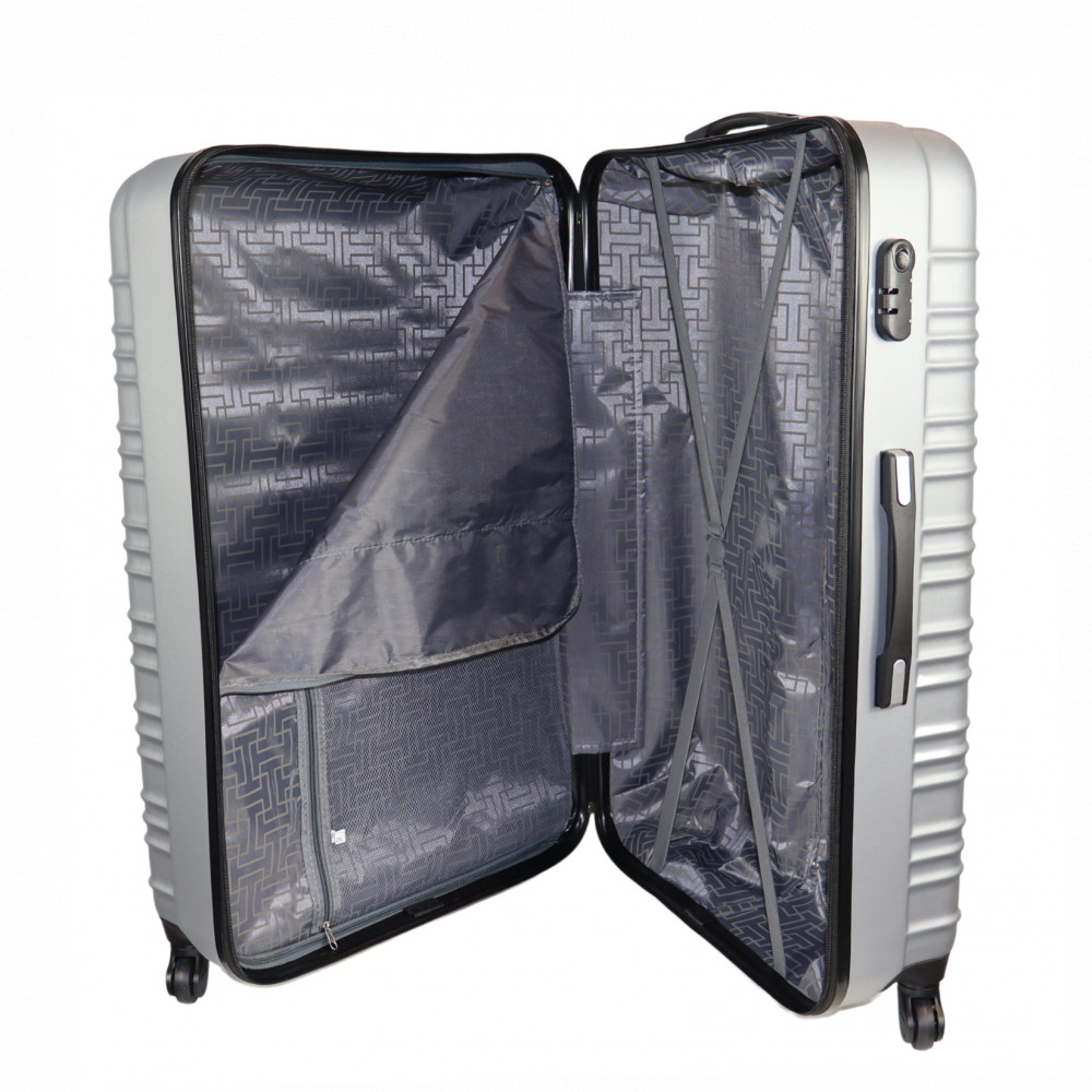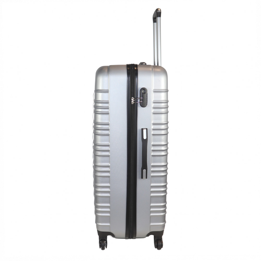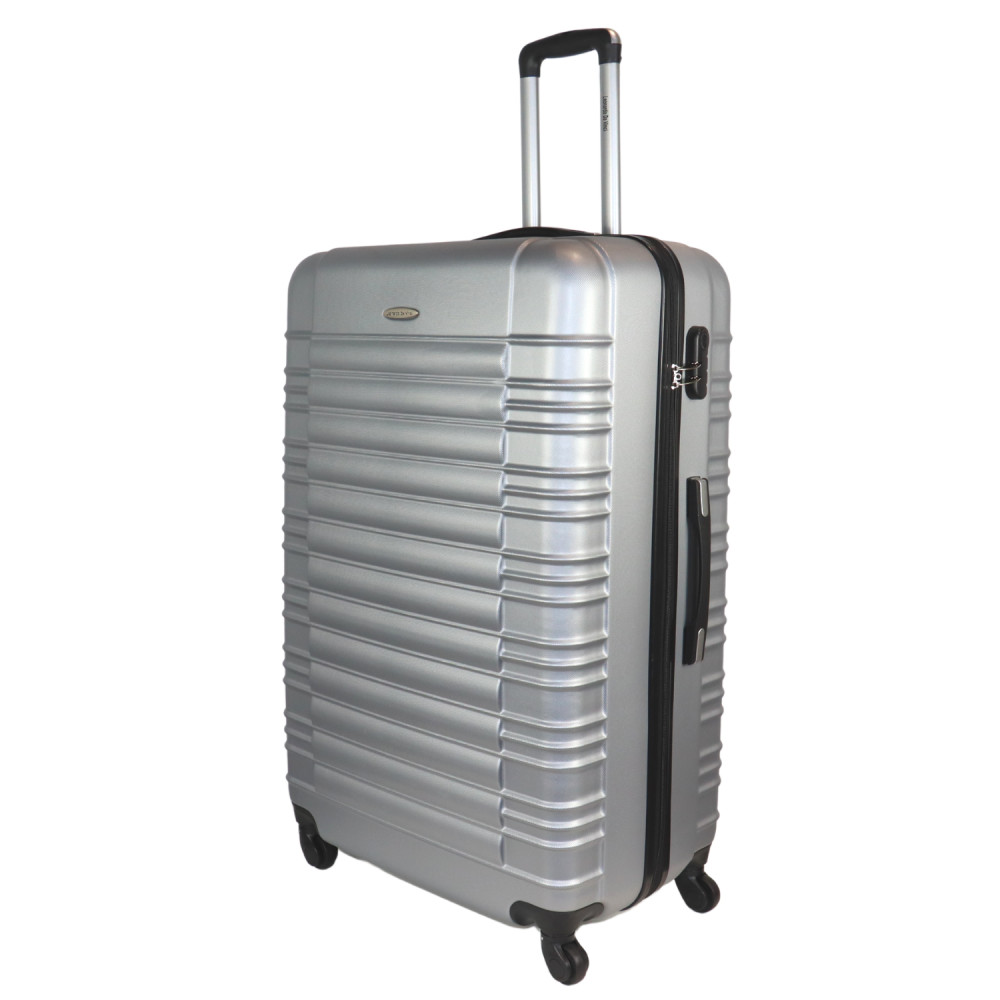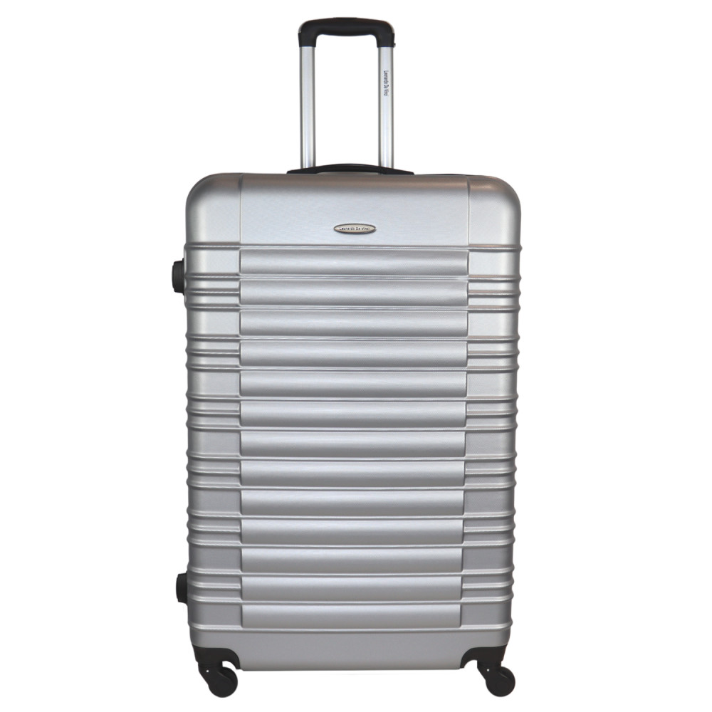 Leonardo Da Vinci extra nagy méretű bőrönd. 2-5 hetes utazáshoz ajánljuk. Anyaga kemény, ütésálló ABS. Strapabíró 360 fokban finoman gördülő négykerekű. Tetején és az oldalán fix kézbefogó fogantyú. Tetején két szekcióban kihúzható húzokar. Az oldalán 3-jegyű számzár, a fő cipzárok lezárásához. A számzár egyénileg, tetszés szerint egyszerűen programozható. Másik oldalán négy védőtalp. Belül teljesen bélelet poliészter. Belseje két rekeszes, cipzáras elválasztóval és állítható ruha rögzítő kereszt pántokkal. Külső méretek (szélesség x magasság x mélység) 56 x 85 x 32 cm (magába foglalva a kerekeket, fogantyúkat). Súlya 4,9 kg. Térfogata 130 l.