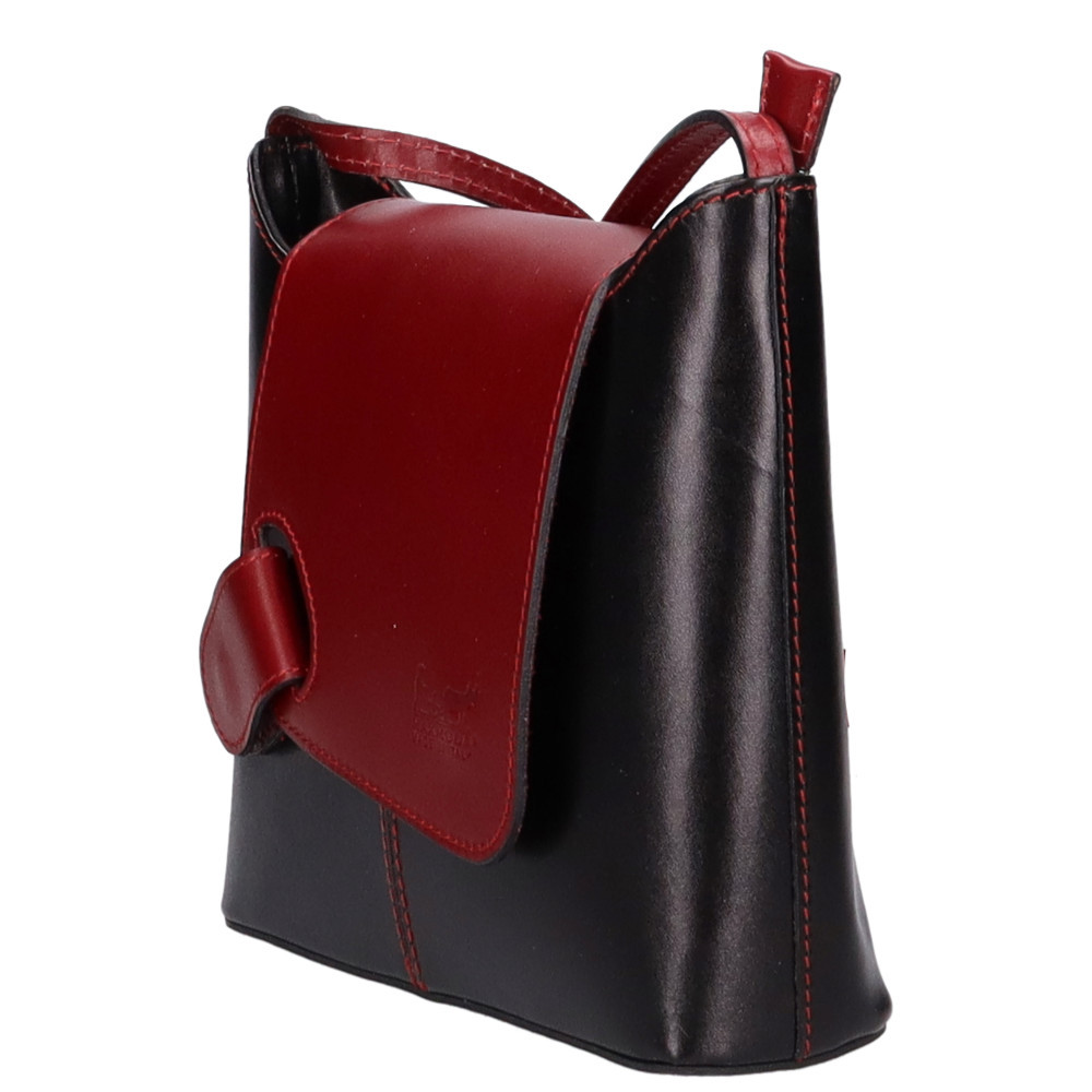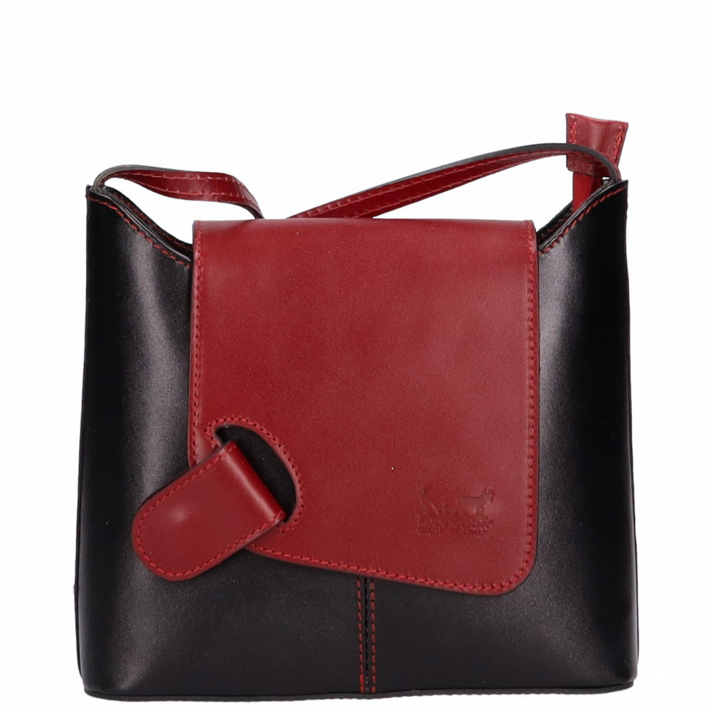 Olasz bőr 9711 fekete piros kicsi női oldaltáska