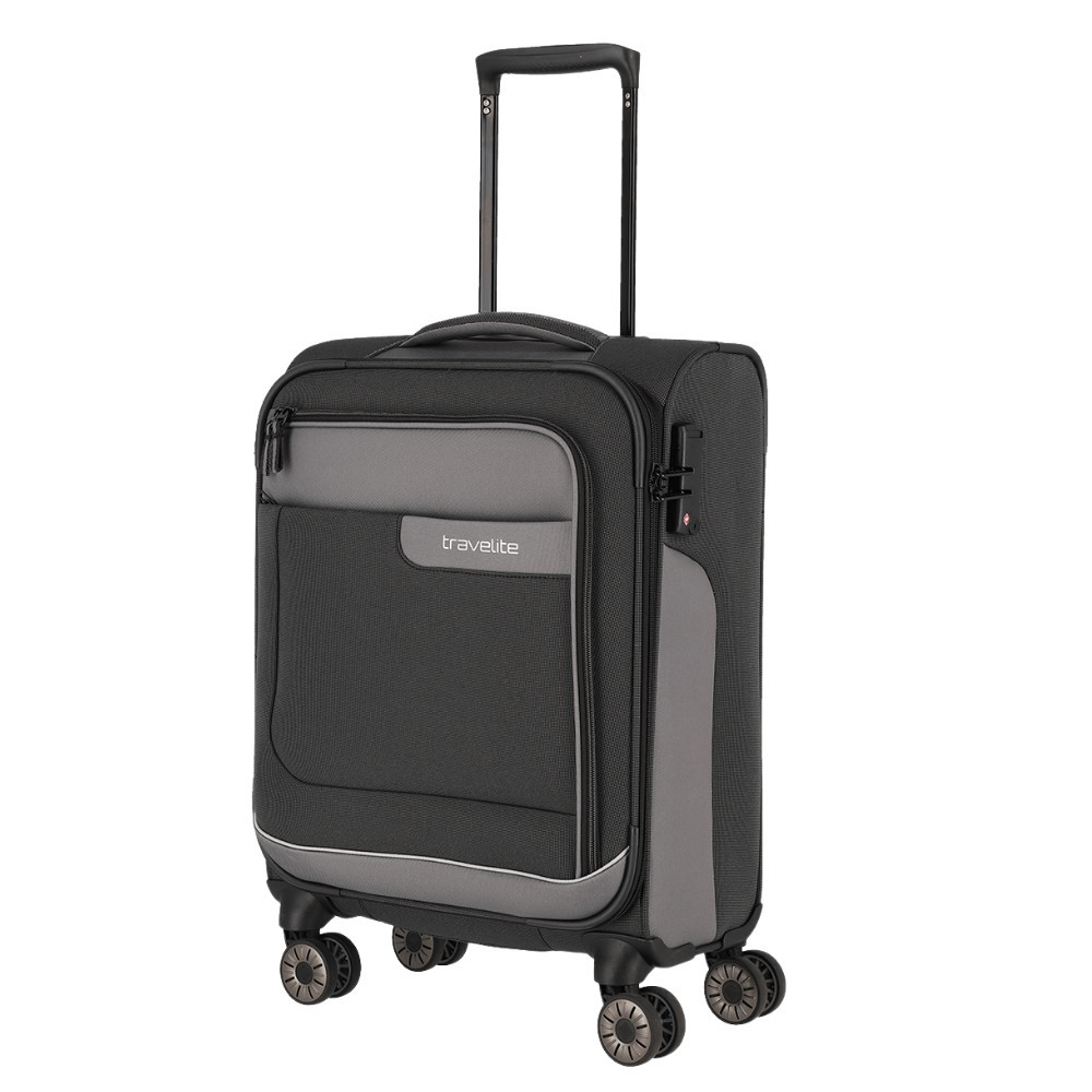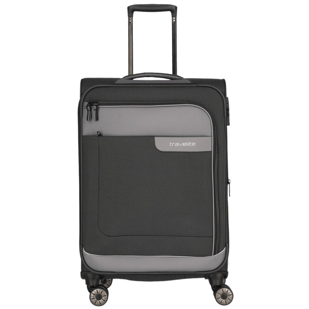Travelite Viia M antrazit bővíthető közepes méretű bőrönd