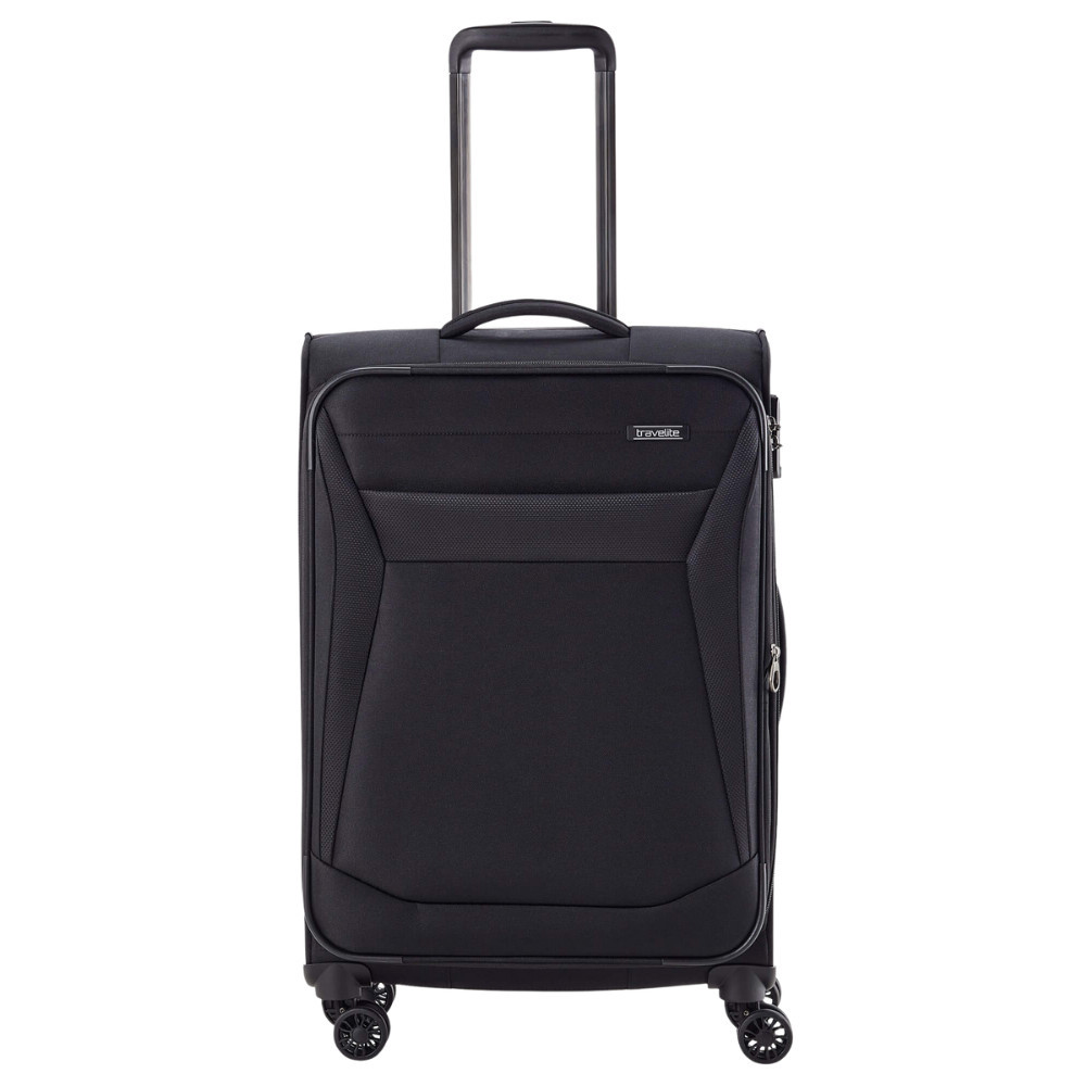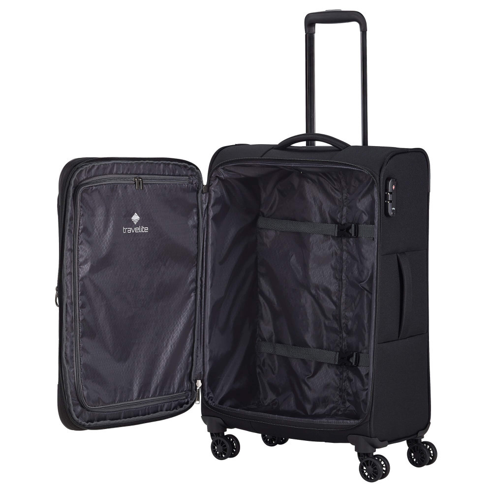 Travelite Chios M fekete bővíthető közepes méretű bőrönd