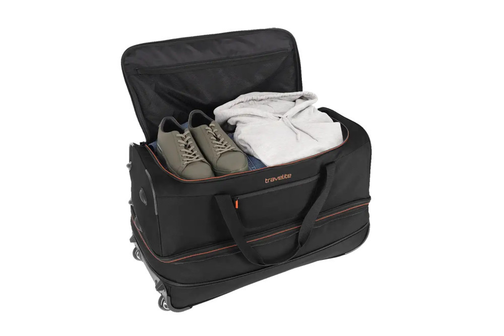 Travelite 96276-01 Basics L fekete narancssárga 70 cm nagy méretű gurulós utazótáska