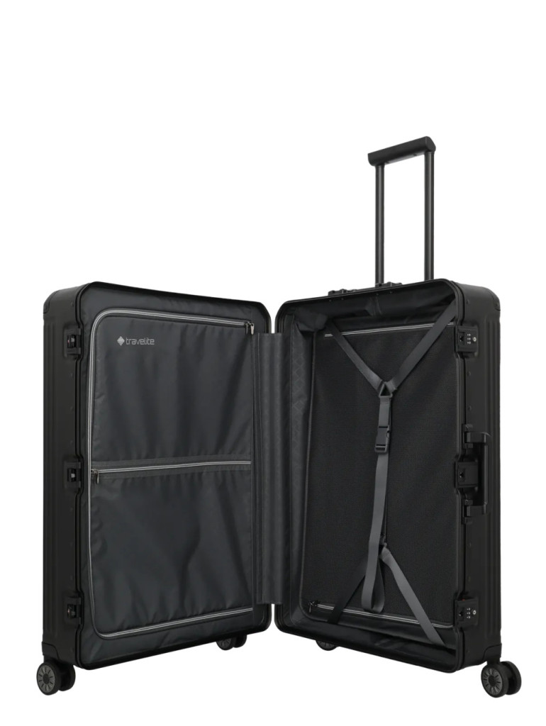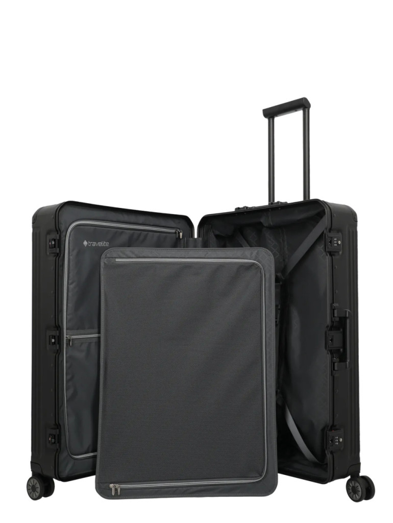 Gyors és rendezett pakolás, biztonságos rögzítés. A változtatható csomagolófalnak, a cipzáras csomagolófalnak, a csomagolópántoknak és a számos rekesznek köszönhetően a bőrönd bepakolása különösen egyszerű.