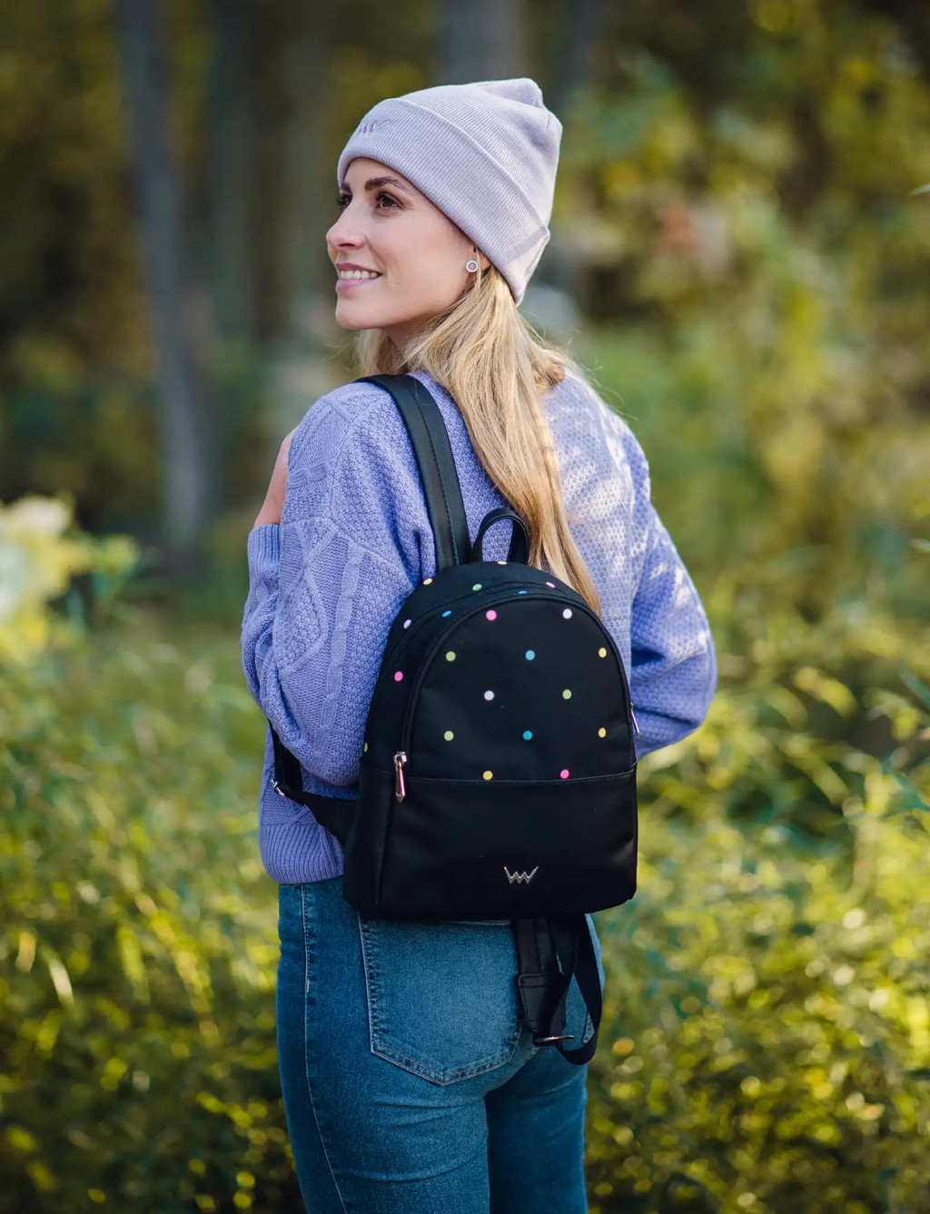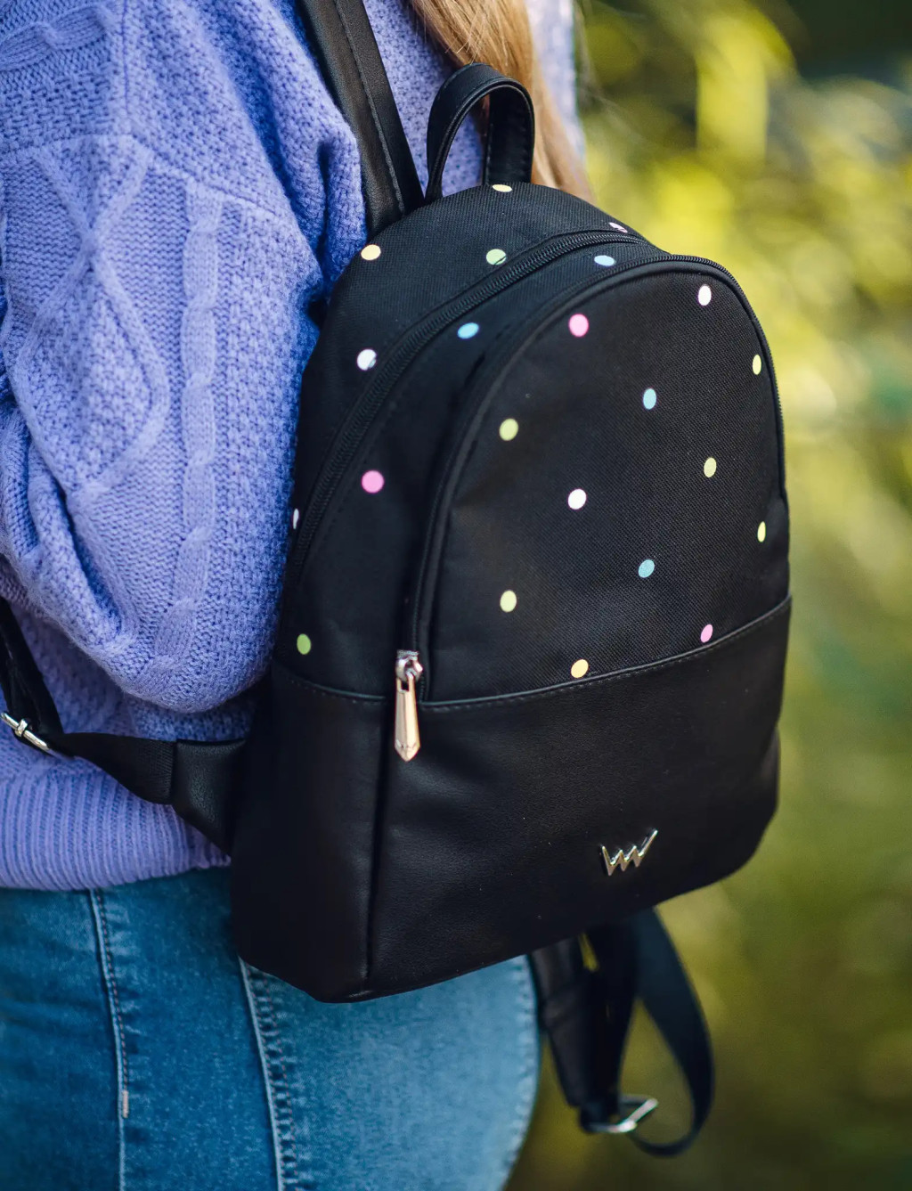 Vuch Zane Mini Borny fekete-színes pöttyös női hátizsák