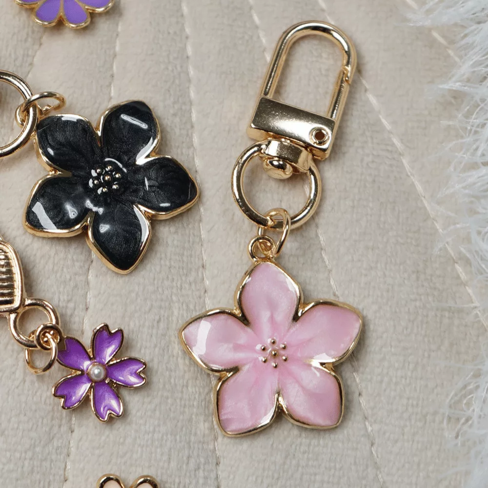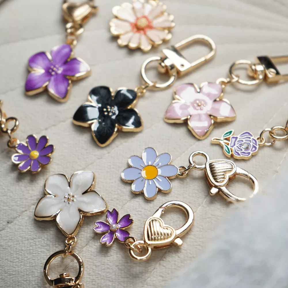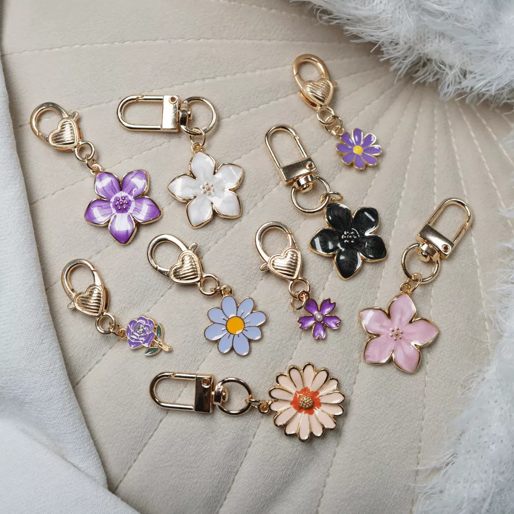 Zsákbamacska - Virág mintájú kicsi táskadísz és kulcstartó