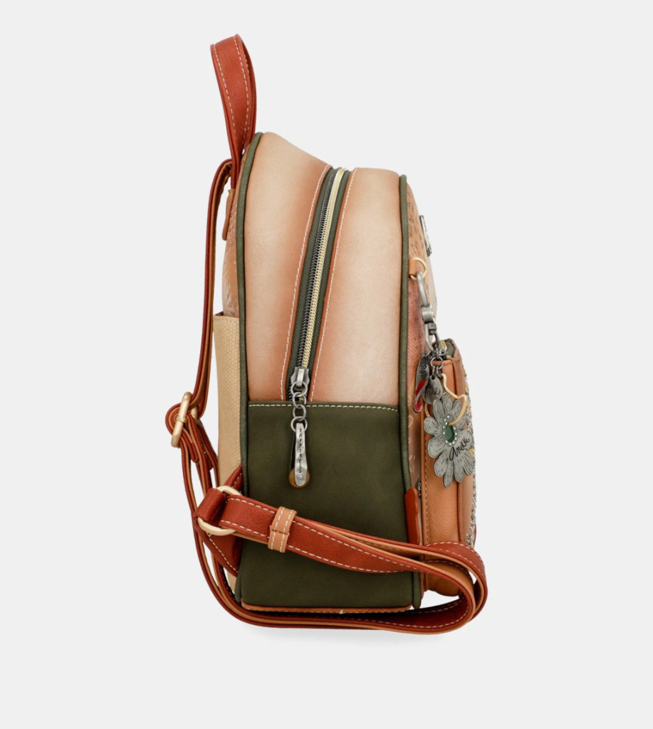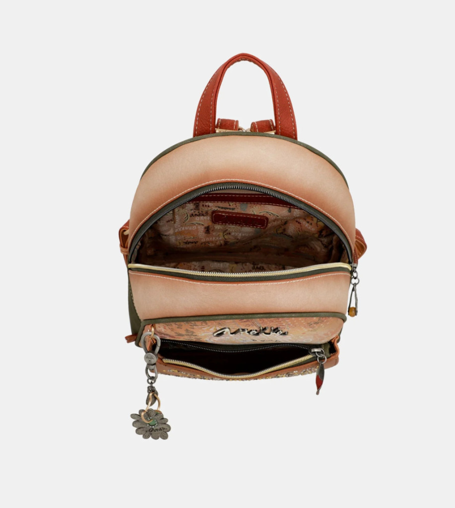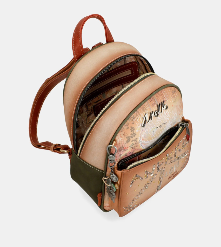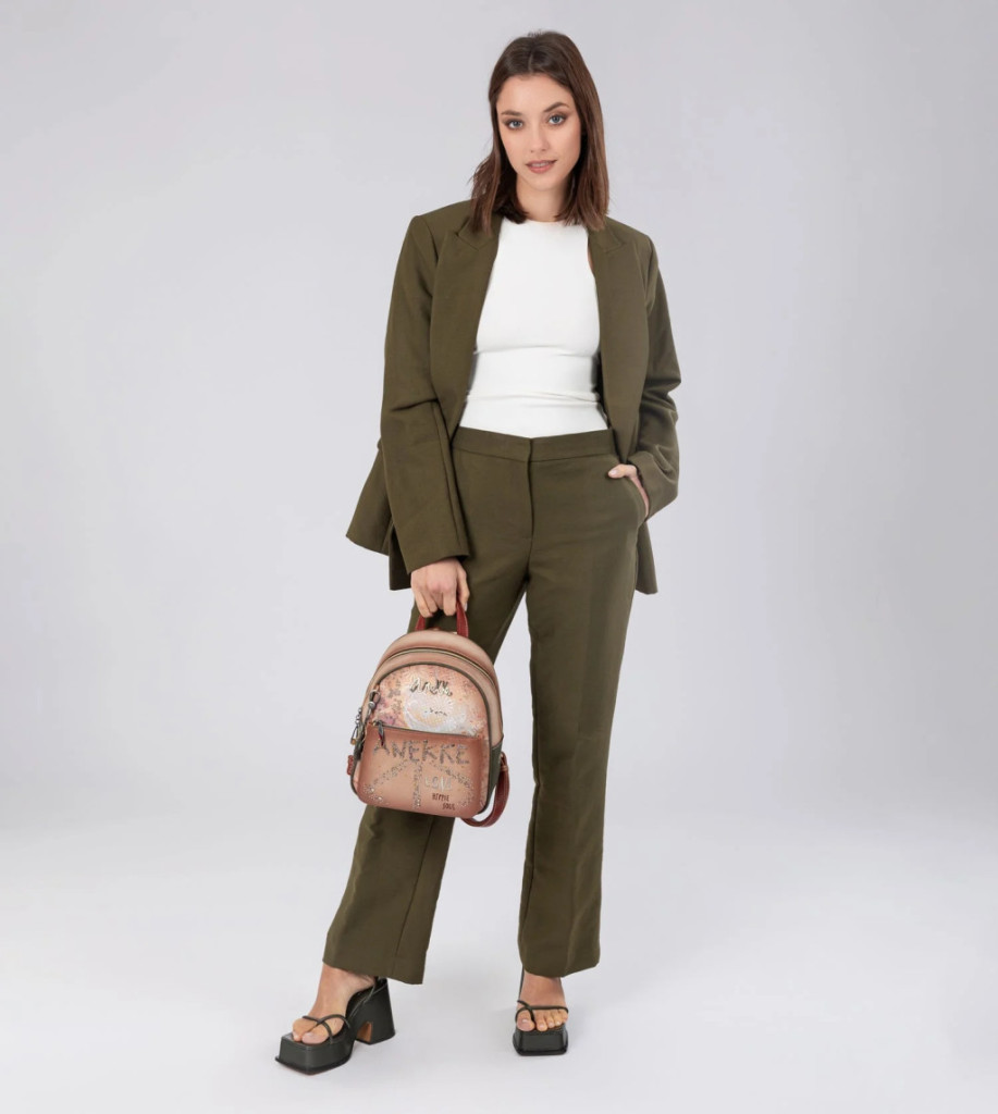 Ez egy közepes méretű hátizsák elöl és hátul zsebekkel. Cipzáros, belső bélése és zsebei vannak. A fogantyúk különböző hosszúságra állíthatók.
