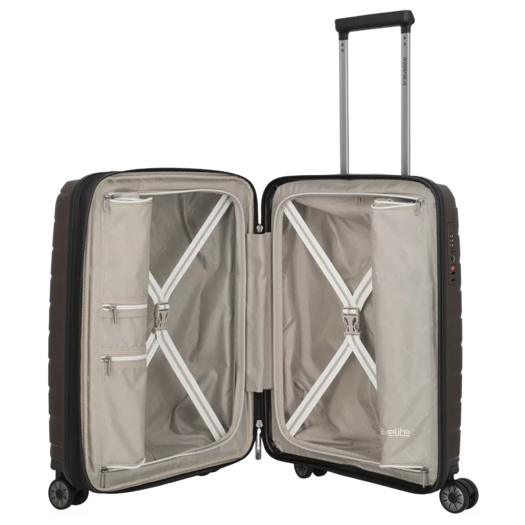 A természet ihlette dizájn. A Travelite életre keltette új kollekcióját a legújabb technológiát és formatervezést felhasználva. Az egyedülálló Air Base polipropilén anyagból készül, mely extrém erős és hihetetlenül könnyű, köszönhetően a stílusos és könnyű alkatrészeknek. A kollekciót két divatos szín jellemzi, jégkék, olive, kávé, lila és antracit, mely összhangban van az alkatrészekkel és az elegáns vízszintes mintával.