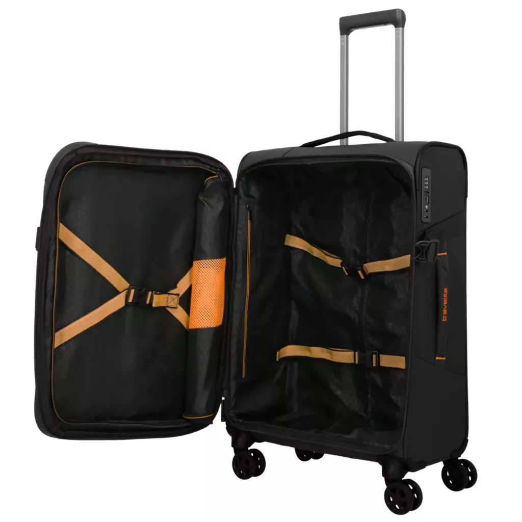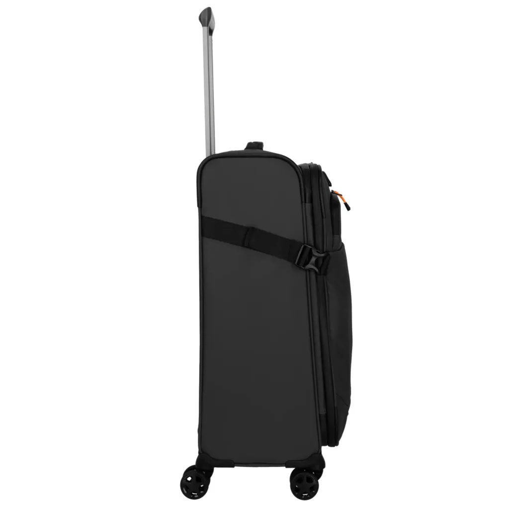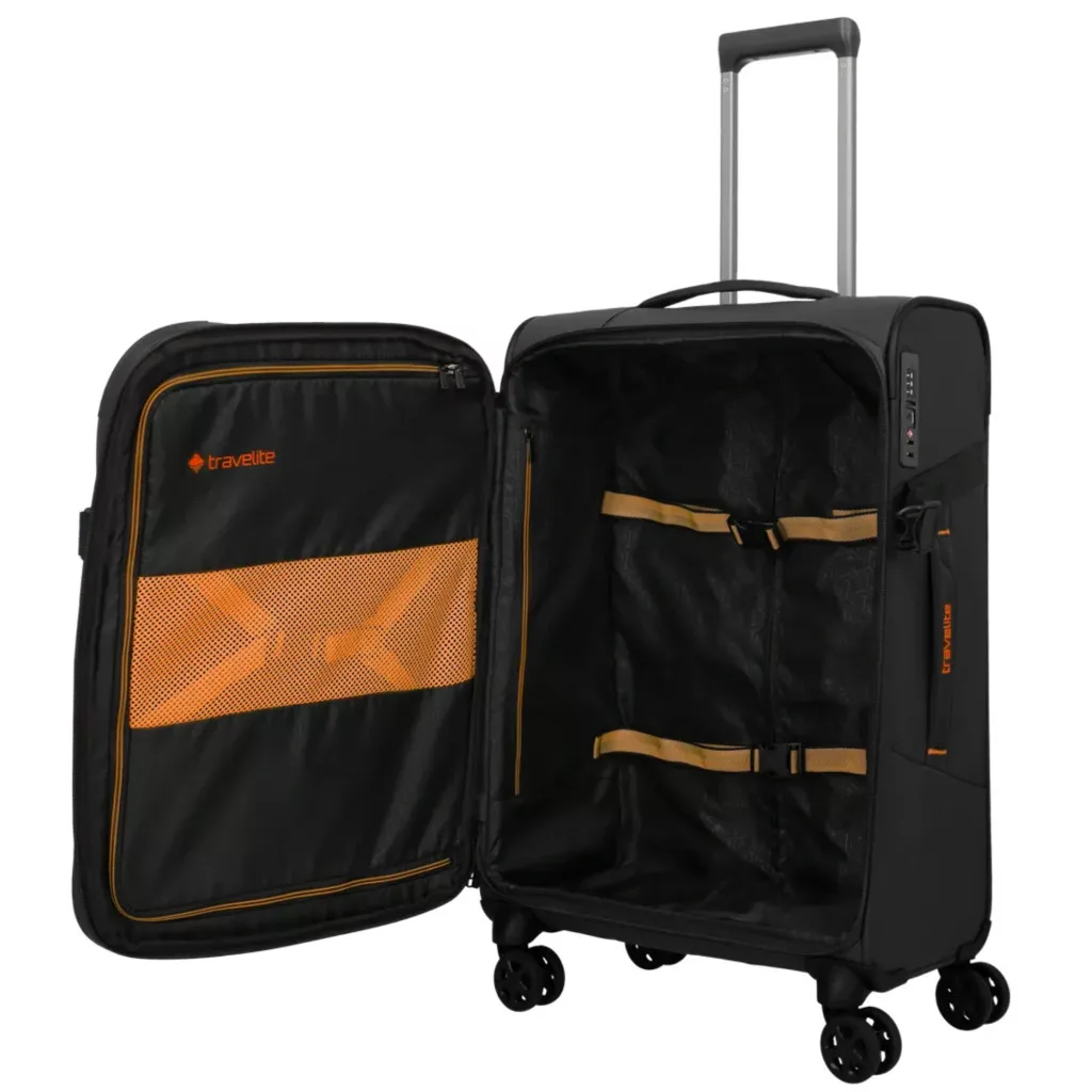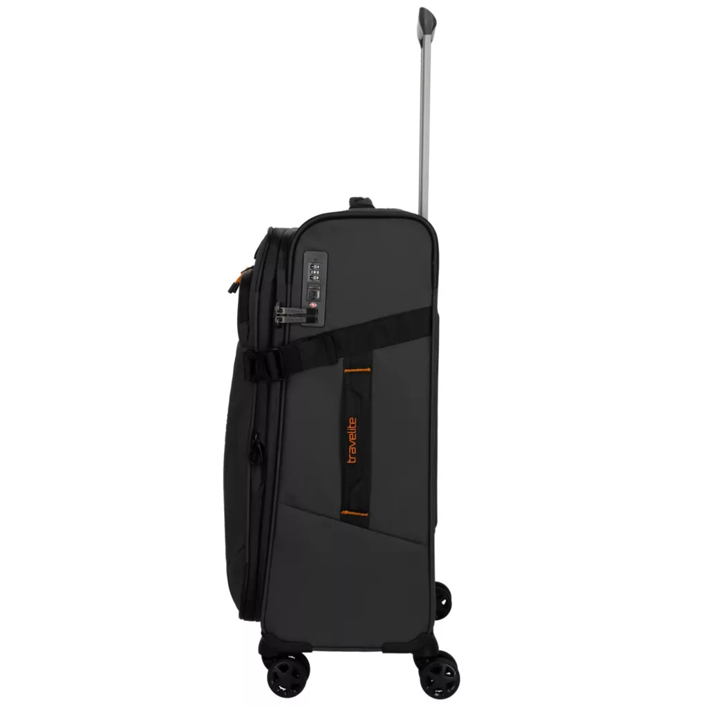 A Travelite Briize kollekció közepes méretű bőröndje ideális választás rövidebb utakhoz vagy üzleti utazásokhoz. Kompakt, mégis meglepően tágas belső térrel rendelkezik, köszönhetően a praktikus bővíthető kialakításnak, amely akár 5 literrel is növeli a csomagtérfogatot.